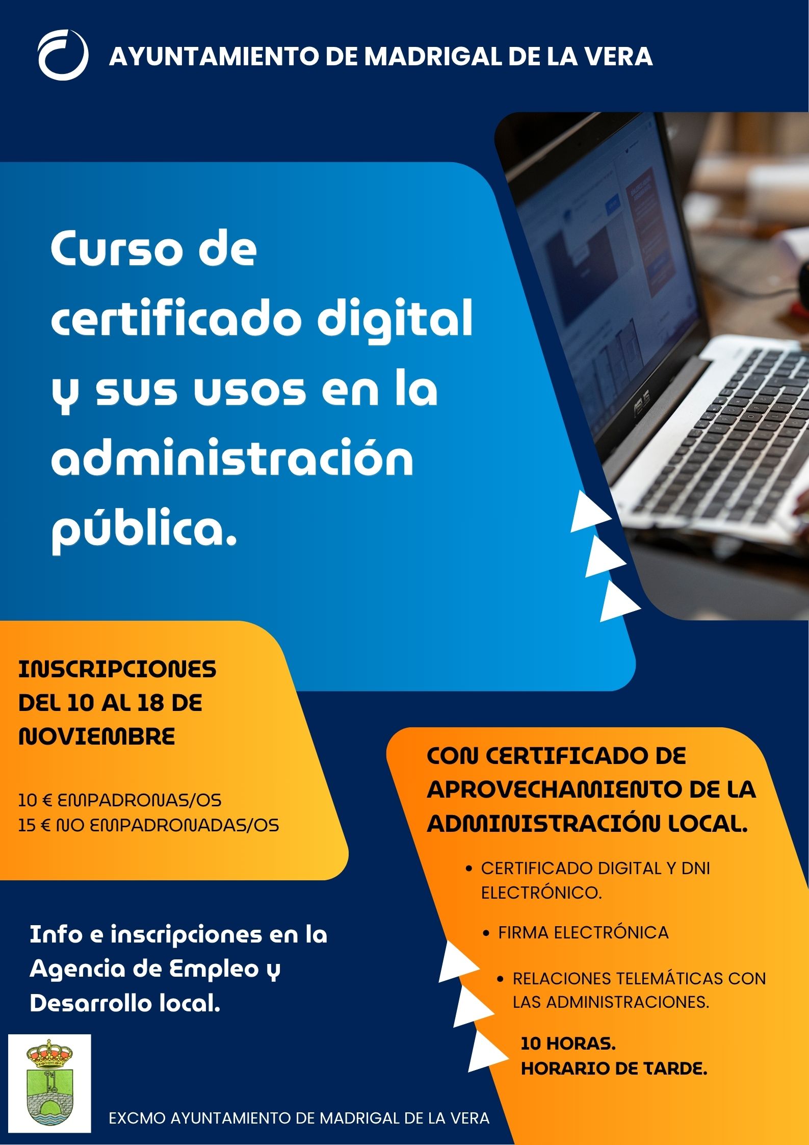 Inscripciones e información del día 10 al martes día 18 de noviembre en la Agencia de empleo y desar(...)