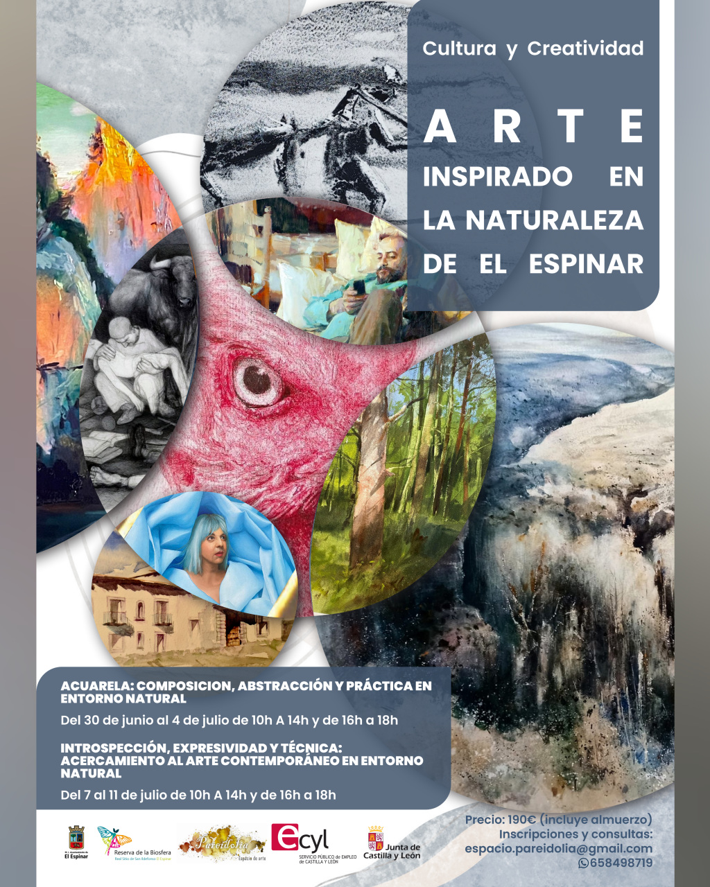 El Ayuntamiento de El Espinar, en colaboración con Pareidolia Espacio de Arte y con ECYL, pondrá en marcha para este verano unos talleres intensivos en formación artística PARA ADULTOS en el medio rural y natural como una herramienta para potenciar el arte como motor cultural de la zona, con el ánimo de promover los atractivos locales, integrando iniciativas que beneficien tanto a vecinos como visitantes, siendo su principal objetivo la participación ciudadana y la consolidación de la cultura como un vector de desarrollo, llegando a convertirse en referente artístico en la región y ser referente anual en toda la provincia.