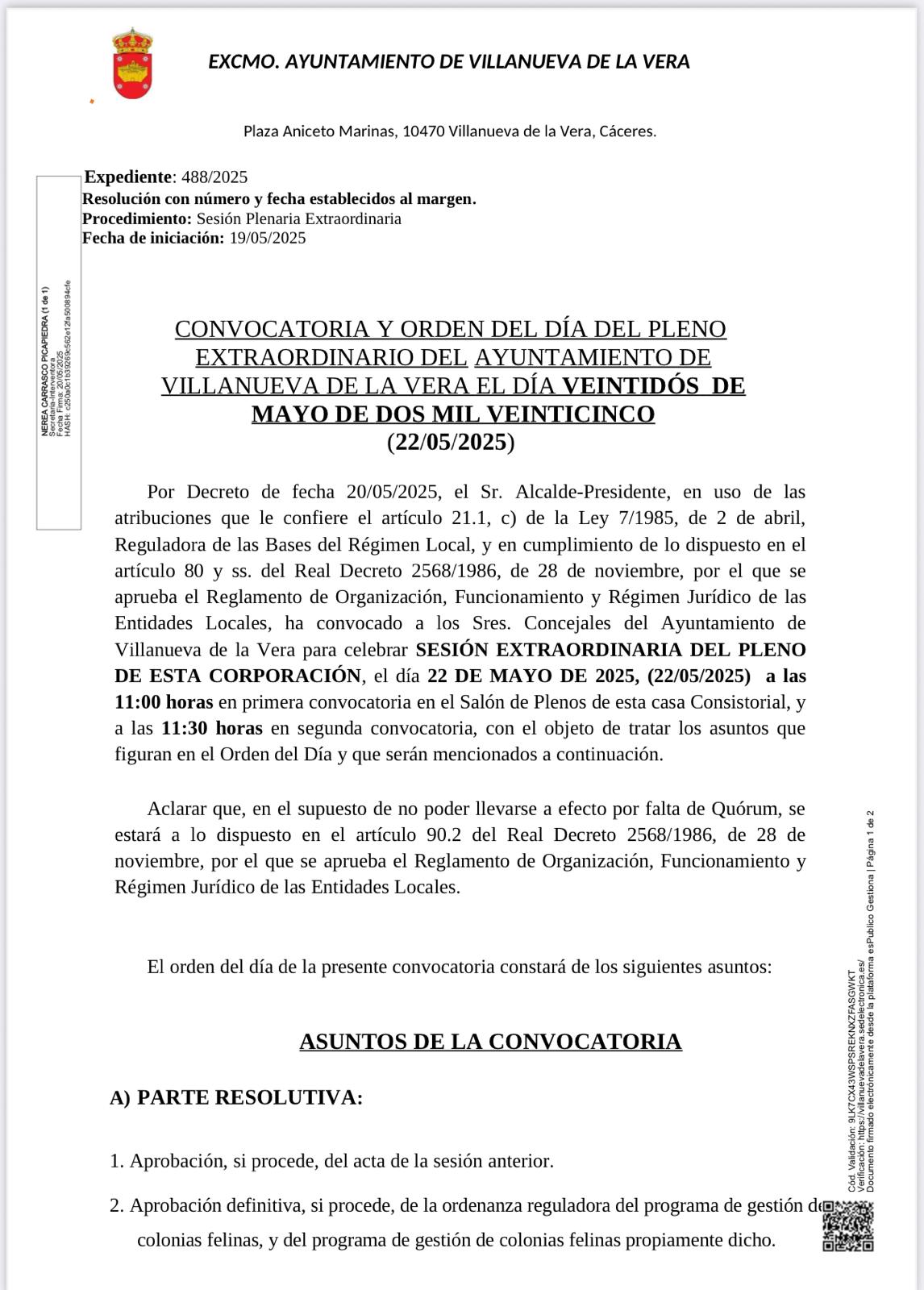 NUEVA CONVOCATORIA - SESIÓN PLENARIA EXTRAORDINARIA