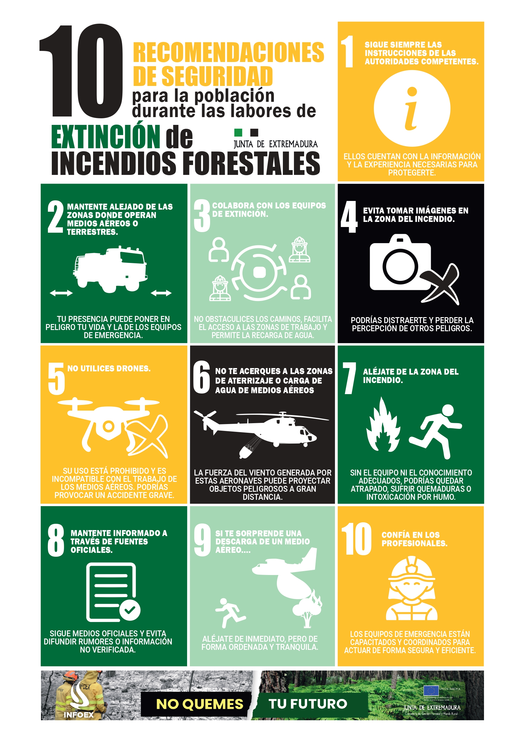 Desde el 1 de junio hasta el 15 de octubre, se activa la Época de Peligro Alto en Extremadura, periodo durante el cual el riesgo de incendios forestales es elevado.
