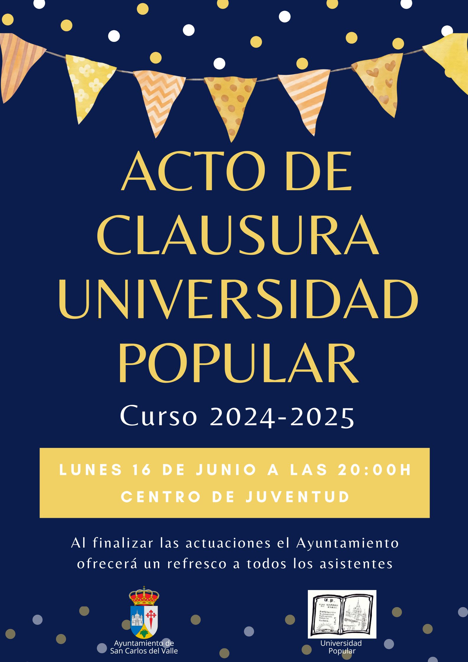 Esta tarde se celebrará el acto de clausura de la Universidad Popular 24/25, en el Centro de La Juventud a las 20h.