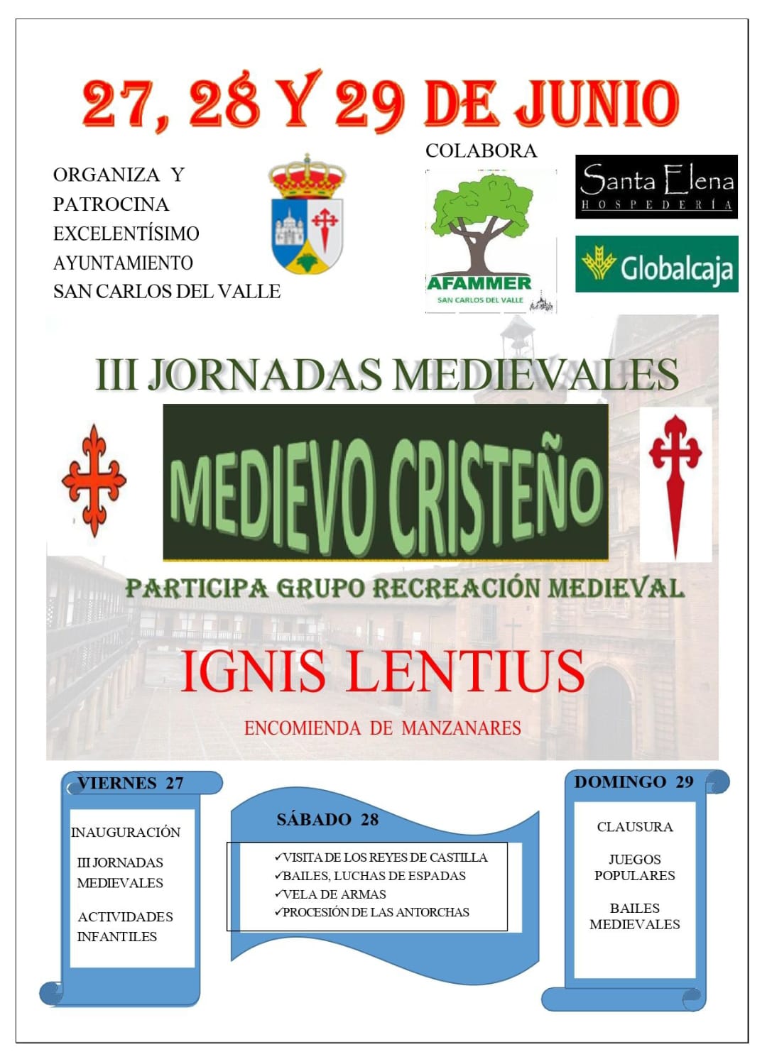 Durante los días 27, 28 y 29 de junio se celebrarán las III Jornadas Medievales de San Carlos del Valle.