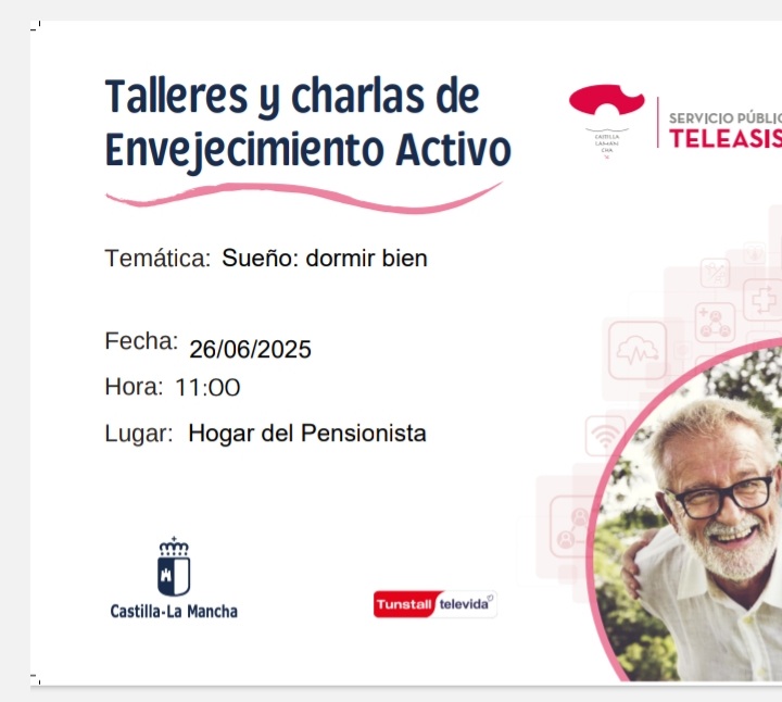 El jueves día 26 a las 11:00h, se hará un taller y charlas de envejecimiento activo para todas las personas mayores que quieran asistir, será en el hogar del jubilado Se adjunta cartel informativo