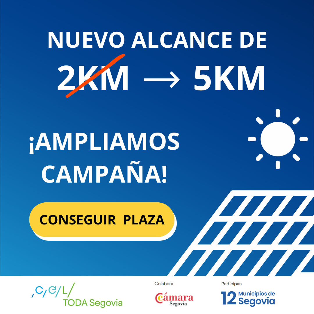 Se aumenta la distancia de las placas solares a 5 km. Si tu vivienda o negocio está dentro de este radio, puedes unirte a CEL TODA SEGOVIA y reducir tu factura de la luz mientras cuidas del planeta💚.
