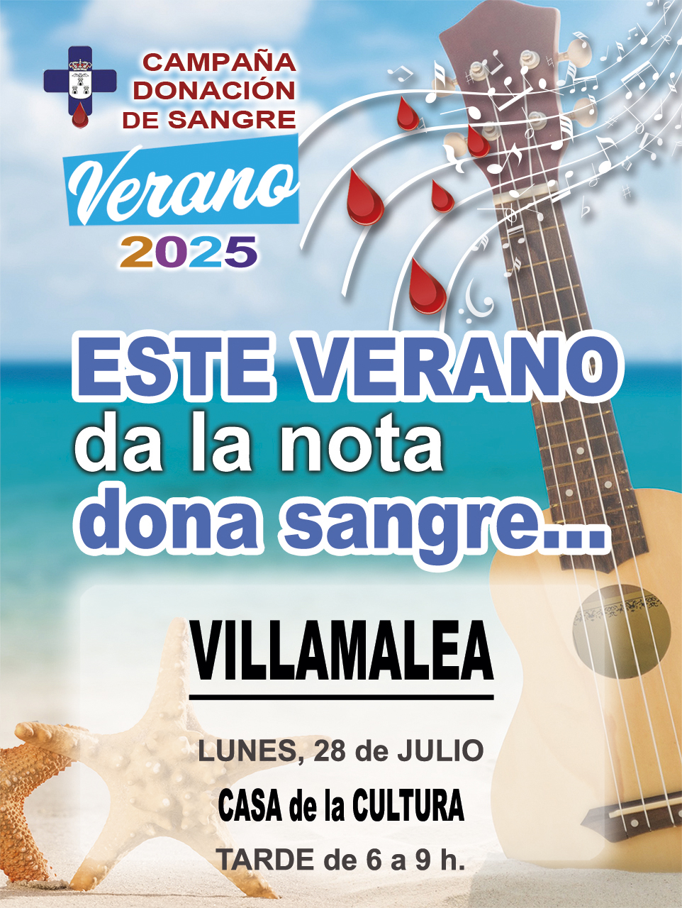 Próxima donación de sangre en Villamalea, lunes 28 de julio en la casa de la cultura de 6 a 9 horas de la tarde.Gracias por su colaboración.