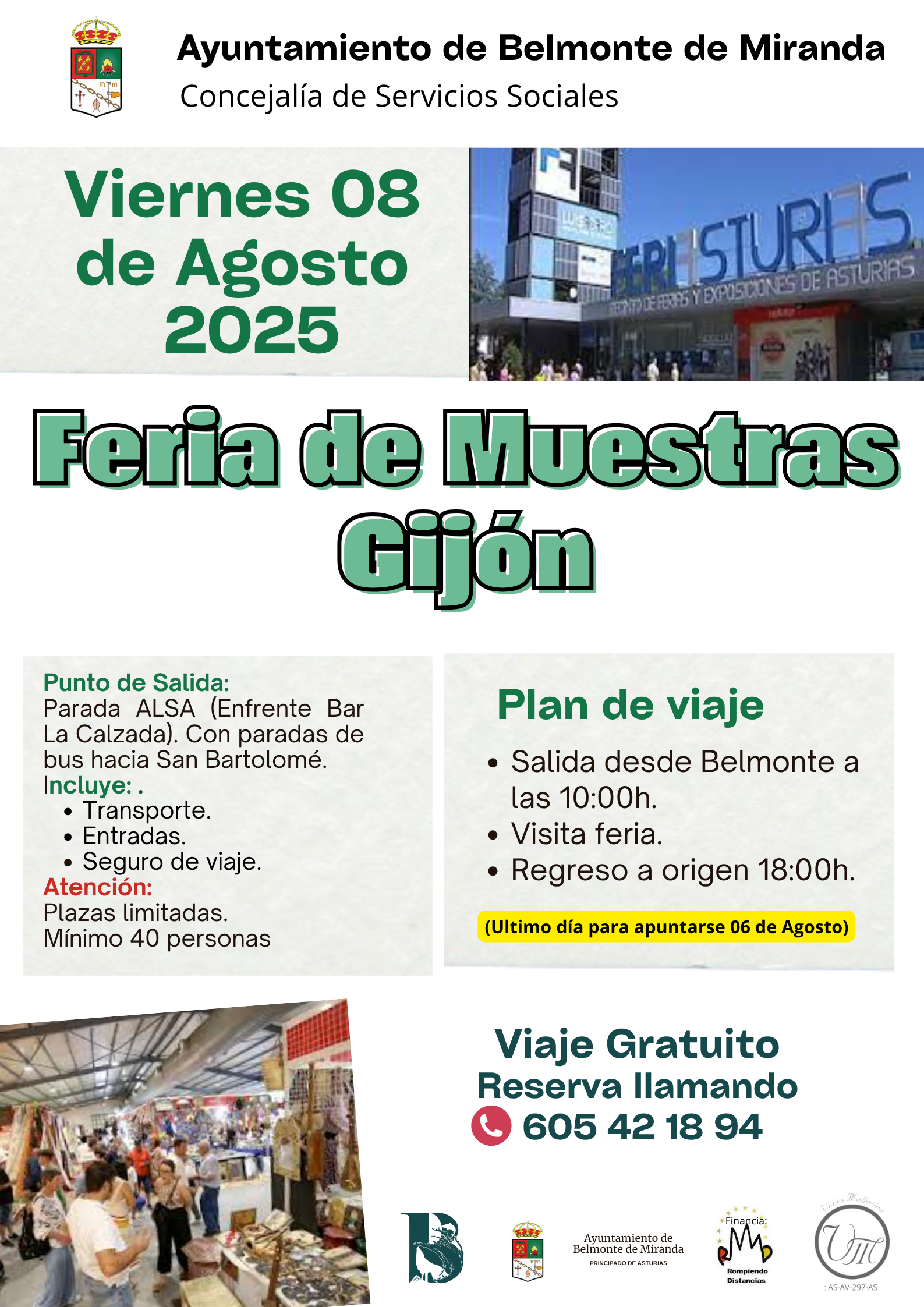 Hoy, miércoles 6 de agosto, es el último día para reservar tu plaza para la excursión a la Feria de Muestras de Gijón.