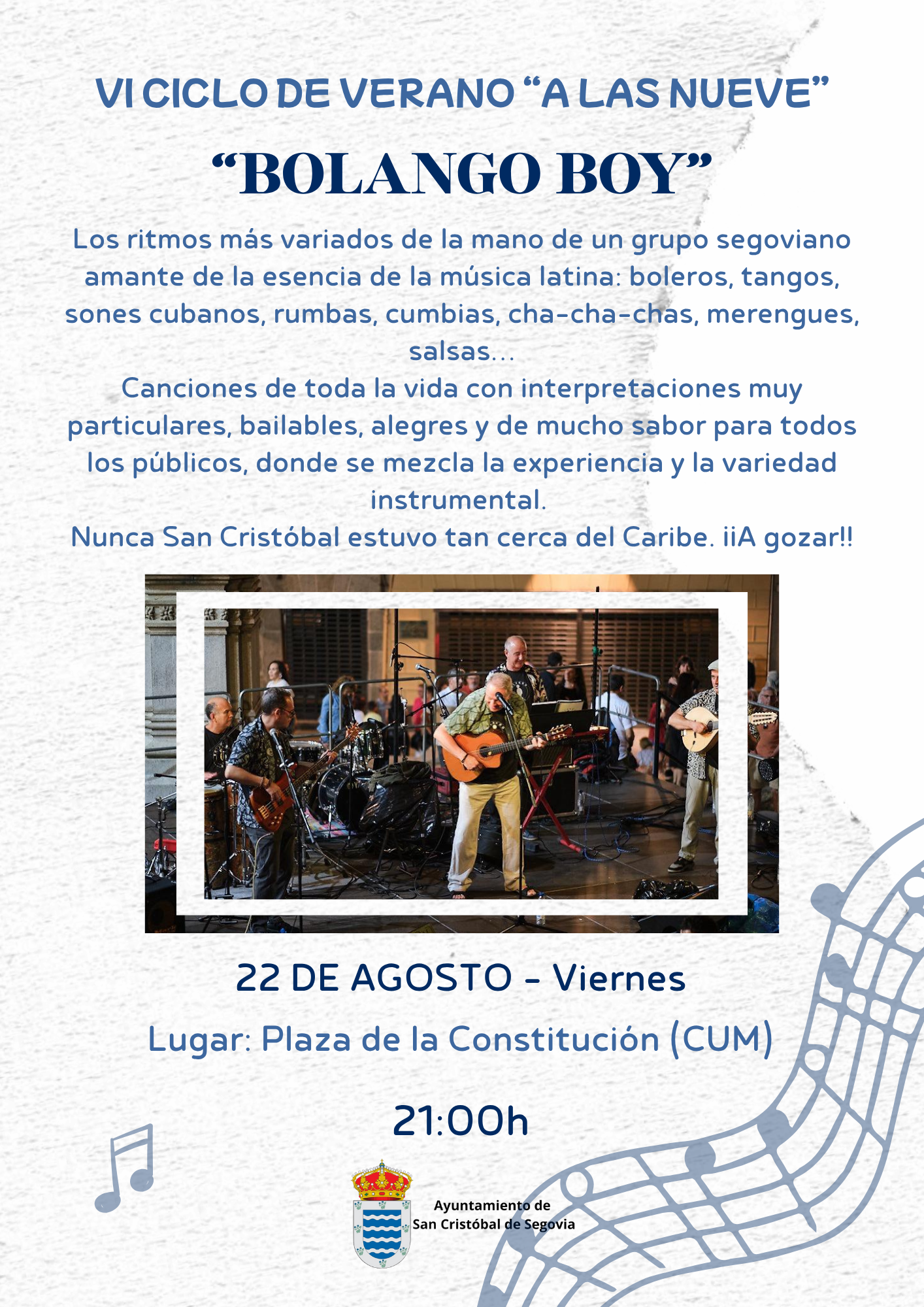 Este viernes 22 de agosto a las 21:00 h, la Plaza de la Constitución se llena de ritmo con "Bolango Boy" 🎺💃