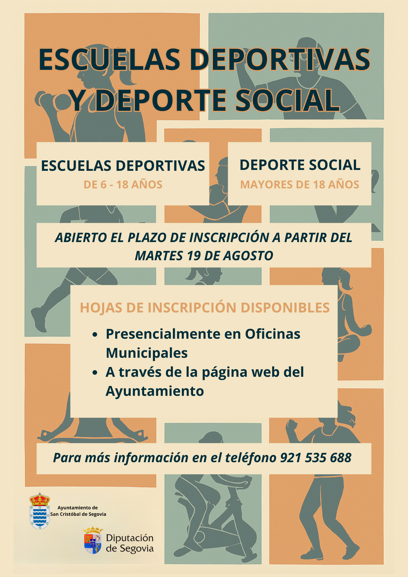 El Ayuntamiento de San Cristóbal de Segovia informa que a partir del martes 19 de agosto se abre el plazo de inscripción para participar en las Escuelas Deportivas y en las actividades de Deporte Social del municipio.