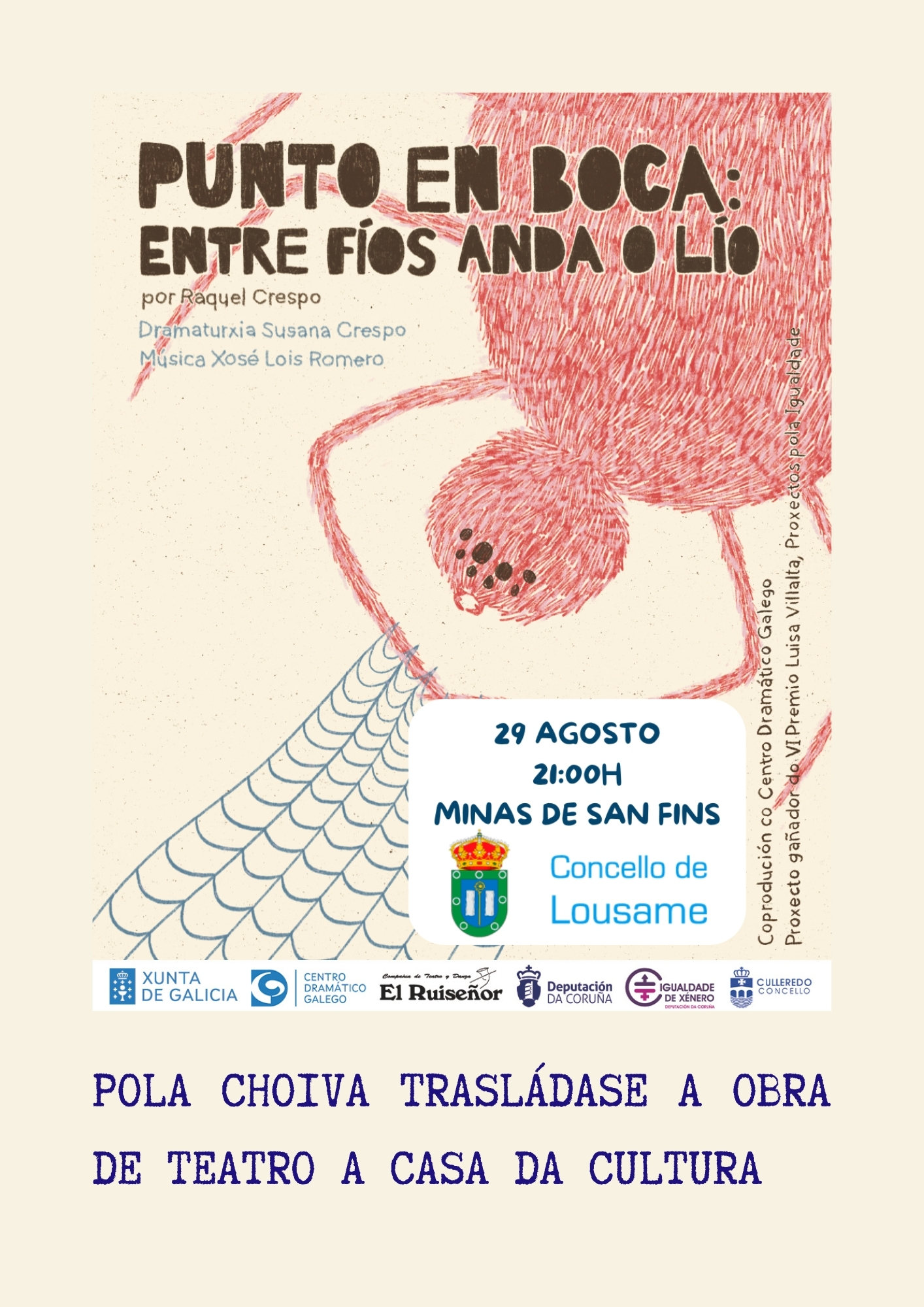 Este espectáculo é o primeiro resultado do proxecto Punto en boca, recoñecido co VI Premio Luísa Villalta para proxectos pola igualdade, que durante os meses de febreiro e marzo desenvolveu unha decena de actividades e obradoiros arredor do mundo da costura no concello de Culleredo.