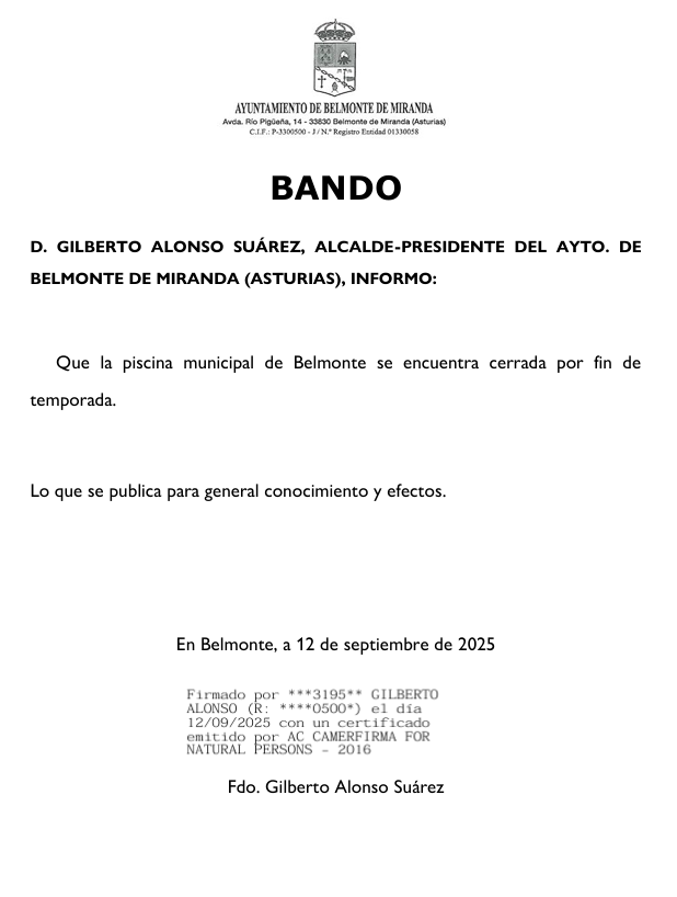 Se comunica que la piscina municipal se encuentra cerrada por fin de temporada.