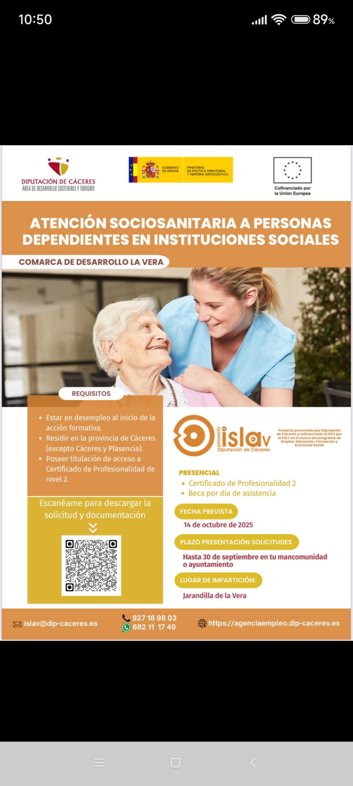 Para cualquier duda pueden ponerse en contacto con nosotras en los teléfonos: 927 18 98 03 / 682 11 17 49 o por correo electrónico: islav@dip-caceres.es