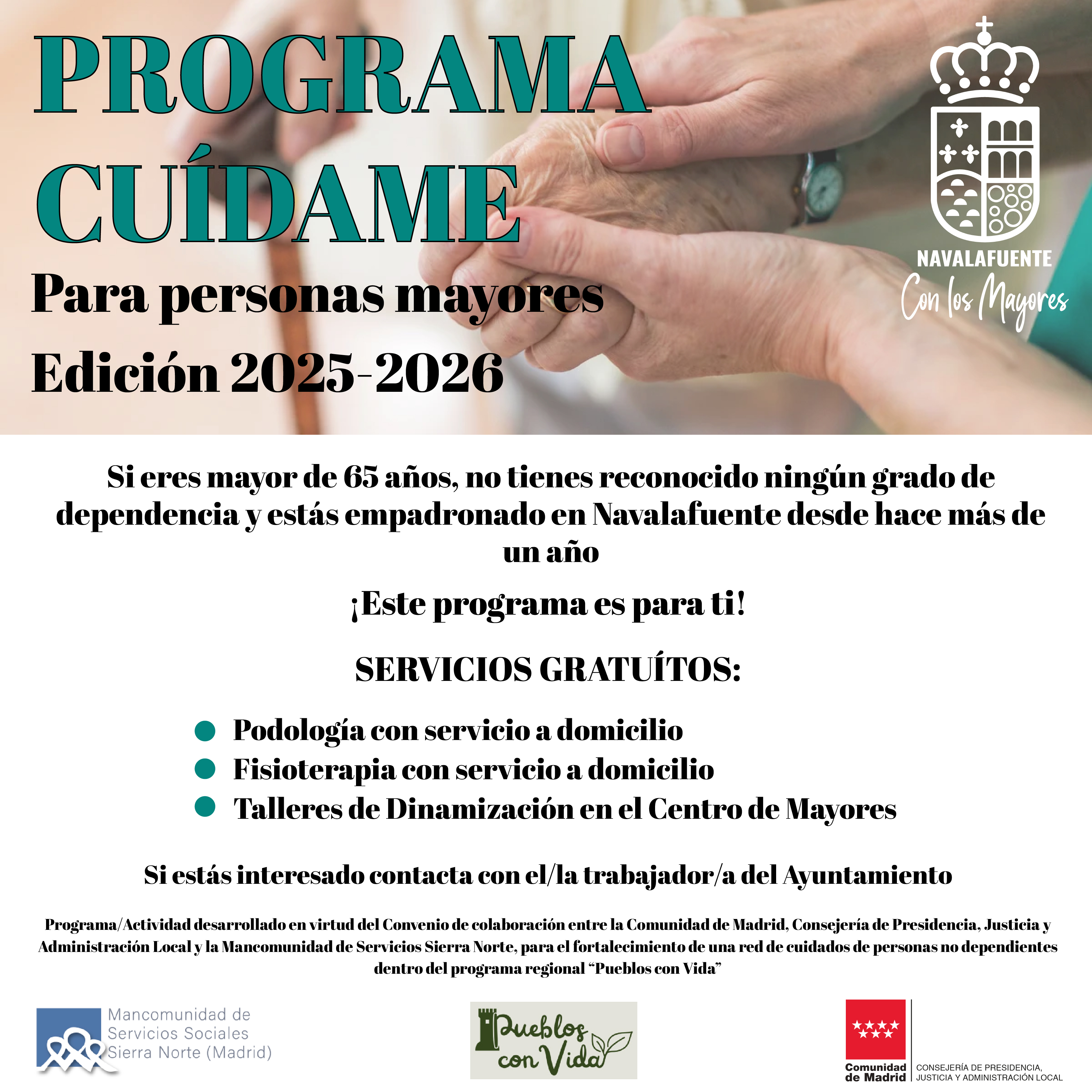 Si tienes 65 años o más, llevas más de un año empadronado en Navalafuente y no tienes reconocido ningún grado de dependencia, puedes beneficiarte de estos servicios gratuitos: