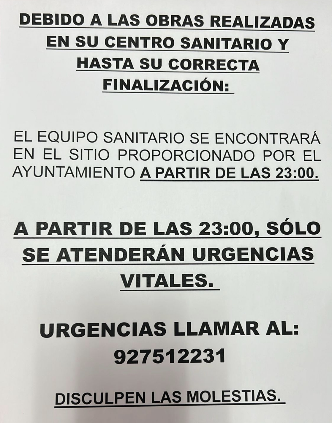 📢📢📣Comunicación por el área de salud de Hoyos sobre el del Punto de Atención Continuada de Cilleros.