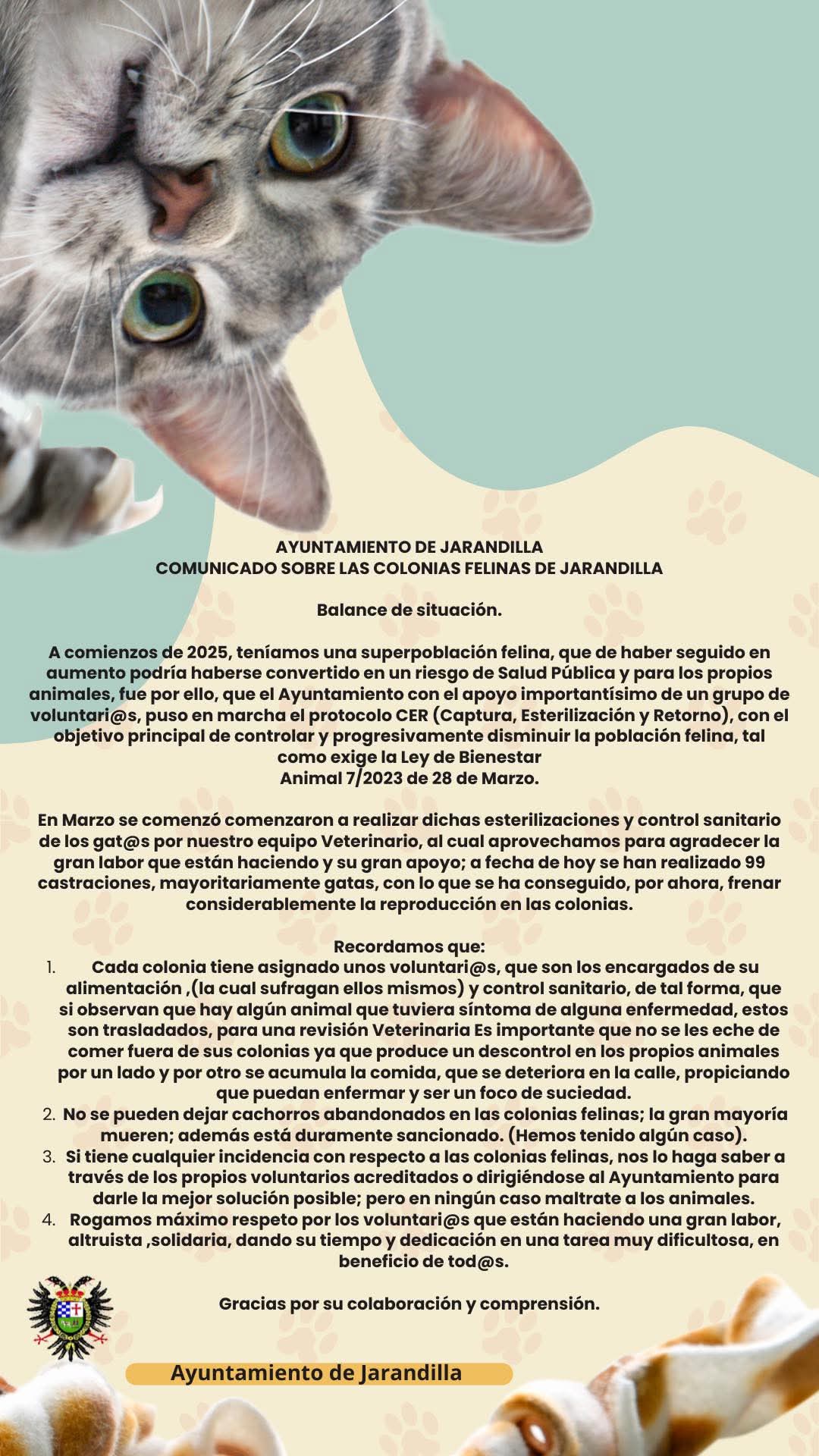COMUNICADO SOBRE LAS COLONIAS FELINAS DE JARANDILLA