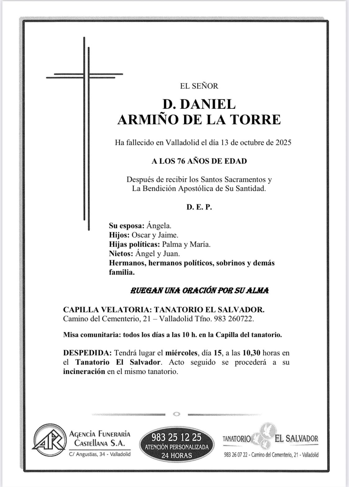 Buenas noches, me comunica la familia que ha fallecido nuestro querido vecino Daniel ArmiƱo, queremos unirnos al dolor de la familia y compartir con ellos tan triste noticia.