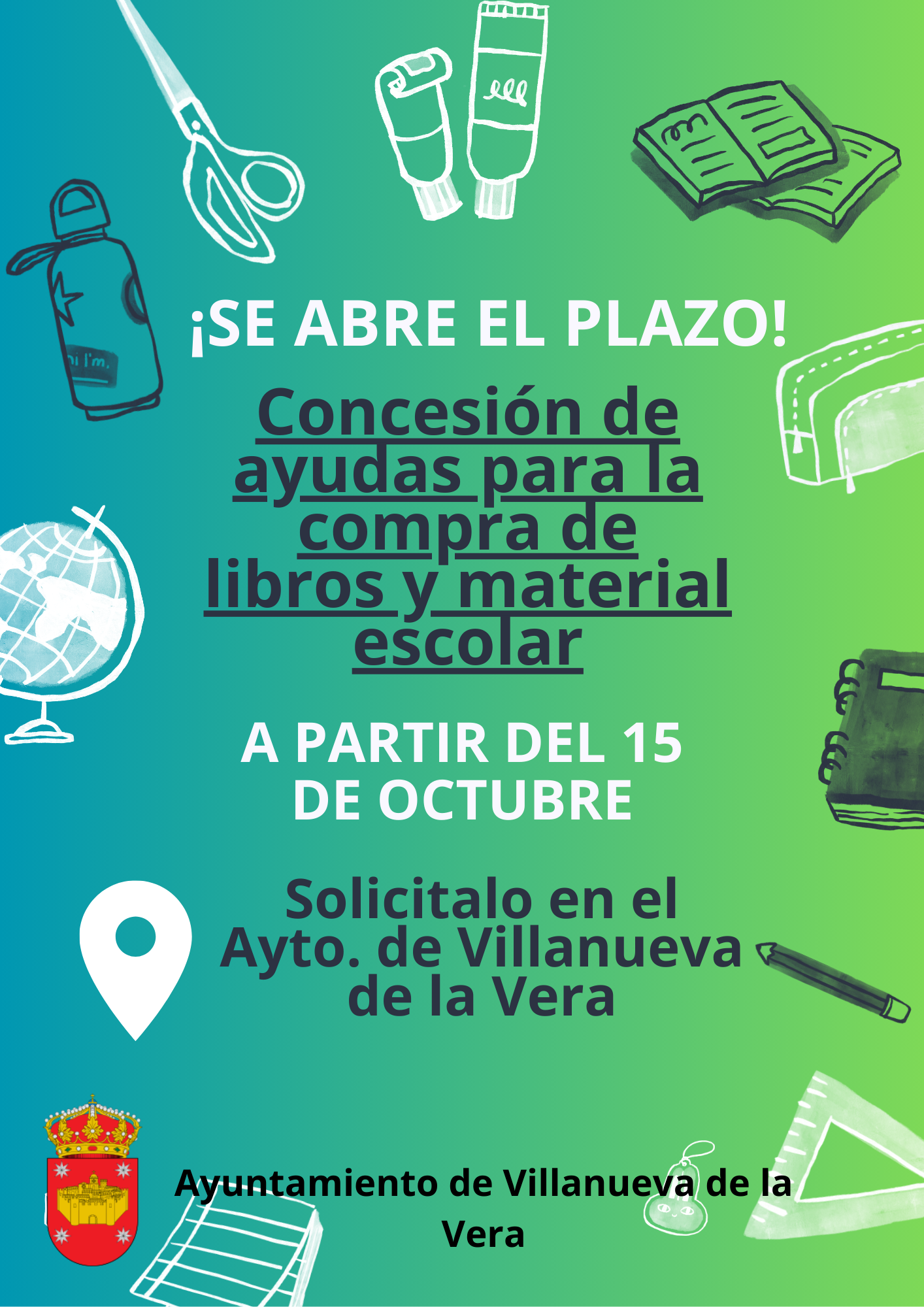 Te informamos que a partir del día 15 de octubre comienza el plazo de presentación para la concesión de ayudas para la compra de libros y material escolar.