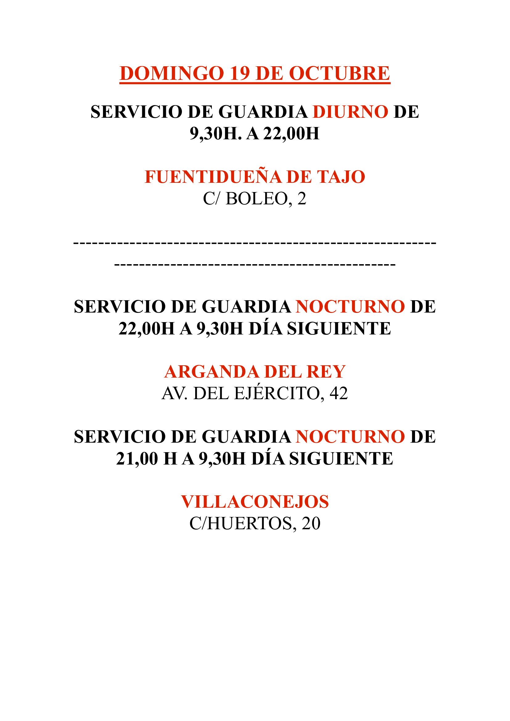 FARMACIAS DE GUARDIA 19 DE OCTUBRE