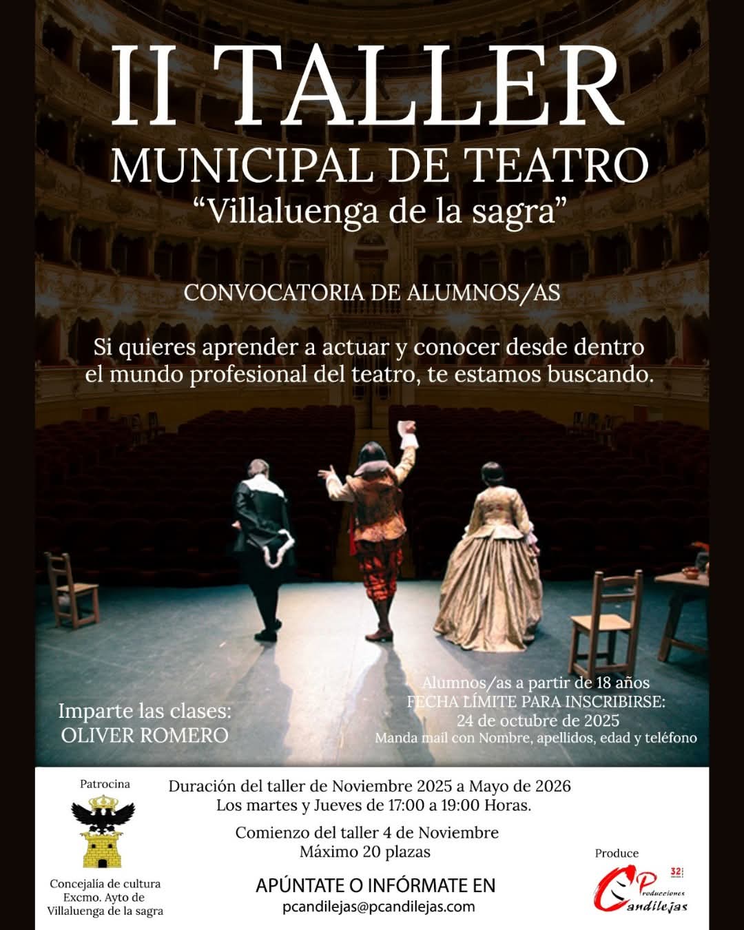 Desde el Ayuntamiento de Villaluenga de la Sagra, te invitamos a formar parte de la nueva edición del Taller Municipal de Teatro.