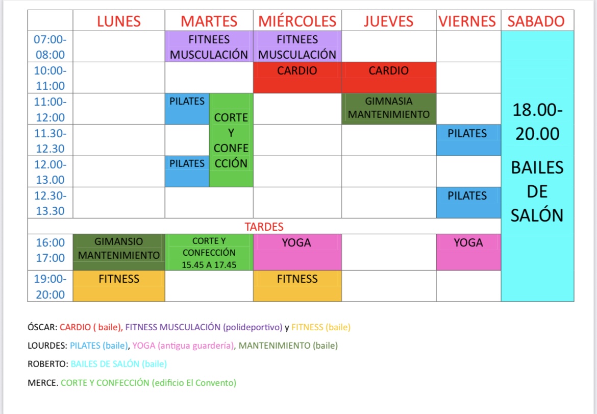 Se publica el horario definitivo de las actividades de la Universidad popular: A continuación se detalla el horario definitivo de cada actividad.