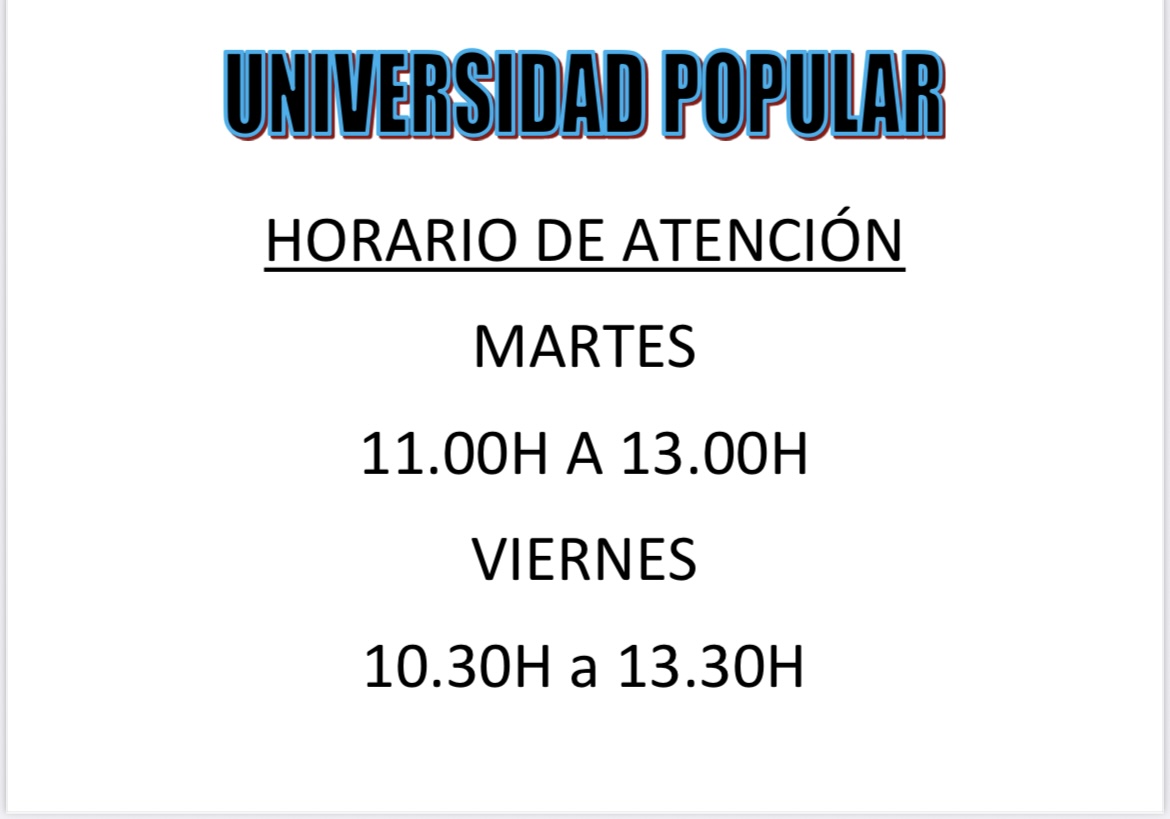 ℹ️ Se informa a la ciudadanía del horario de atención al público de la Universidad Popular.
