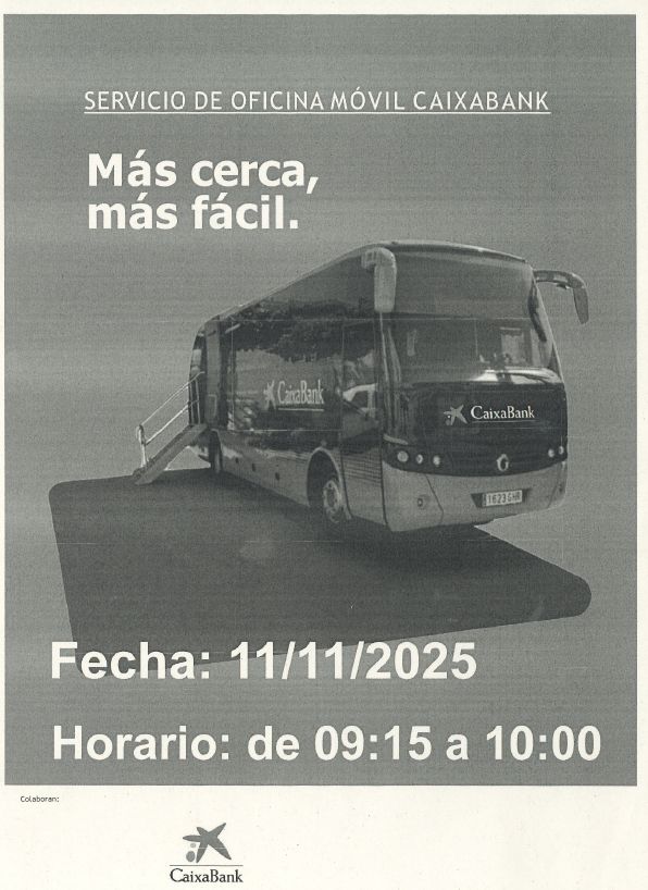de 9:15 a 10:00h Oficina móvil Caixabank.