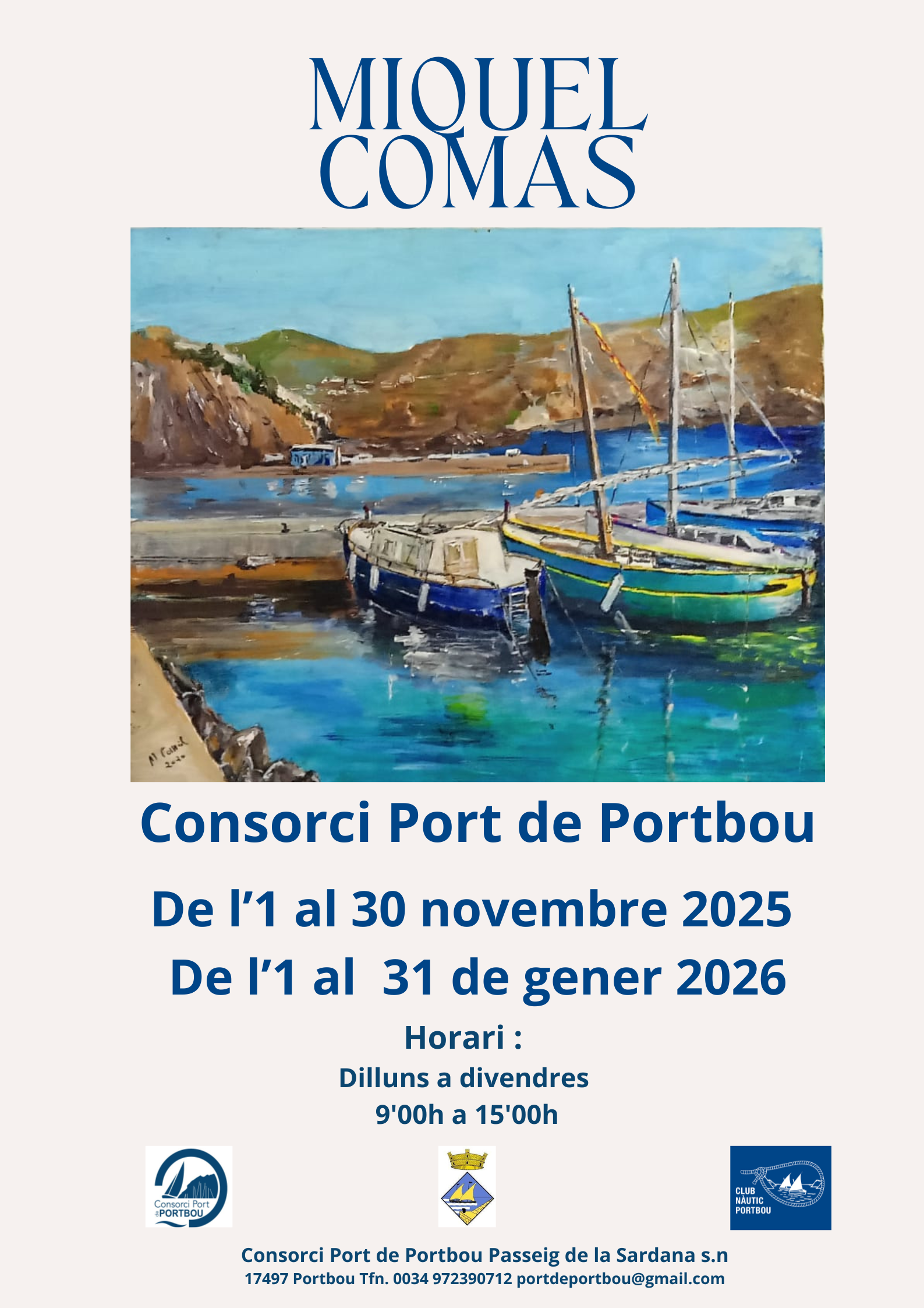 CONSORCI PORT DE PORTBOUExposició pintures de Miquel ComasDe l'1 al 30 de novembre 2025De l'1 al 31 de gener 2026HORARIDilluns a Divendres9:00h a 15:00h