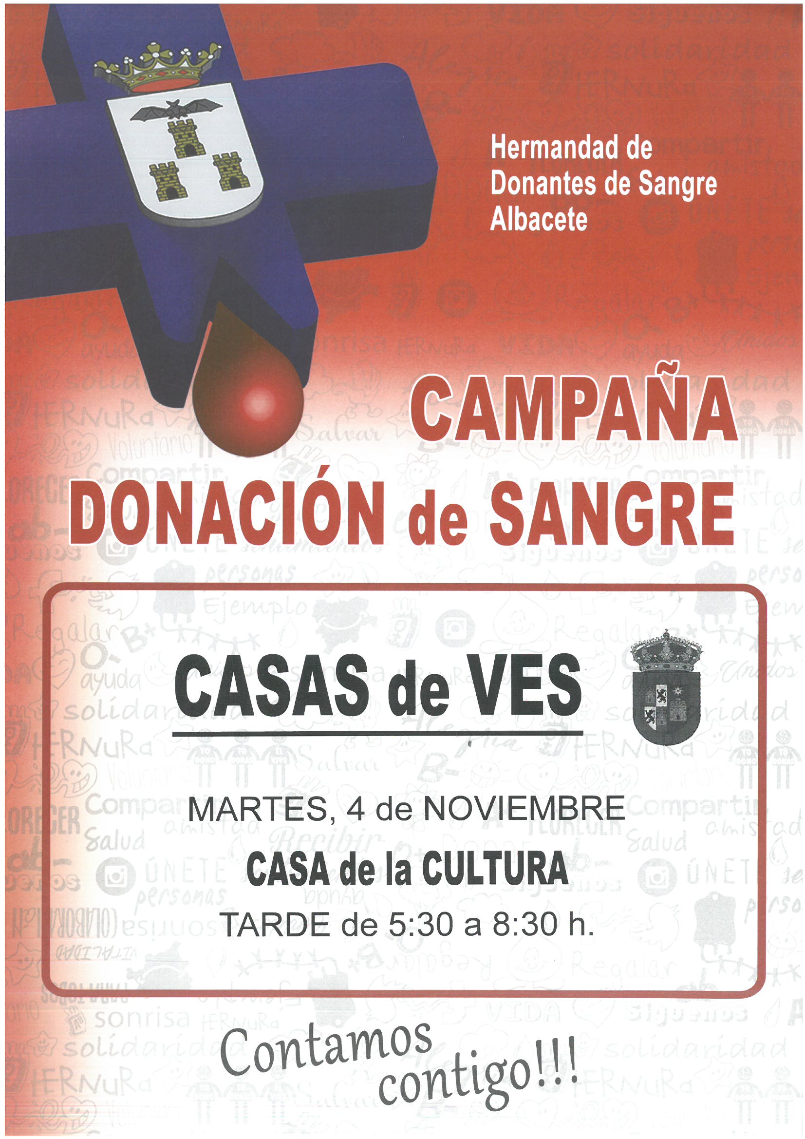 Este próximo martes, 4 de noviembre, se realizará la donación de sangre en la Casa de la Cultura.Horario: de 17:30: h a 20:30 h.Gracias por su colaboración.
