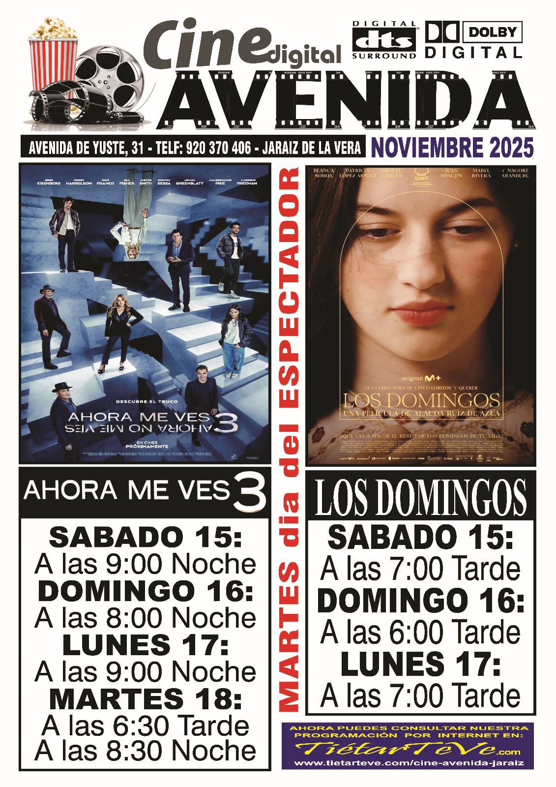 "AHORA ME VES 3" y "LOS DOMINGOS" en el Teatro Cine Avenida de Jaraíz de la Vera, desde el sábado 15 al martes 18 de noviembre de 2025.