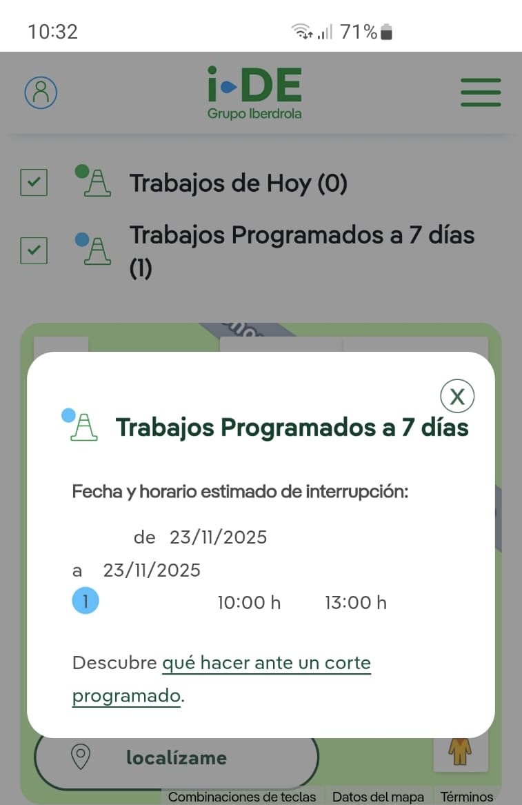 IBERDROLA comunica que el corte queda pospuesto para el domingo, 23 de noviembre, en horario aproximado de 10:00 a 13:00 h.
