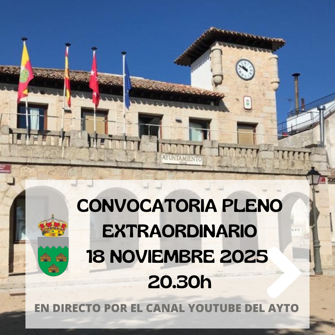 Se informa de la convocatoria a Pleno Extraordinario hoy martes día 18 de noviembre de 2025 a las 20,30h en el Salón de Plenos del Ayuntamiento.
