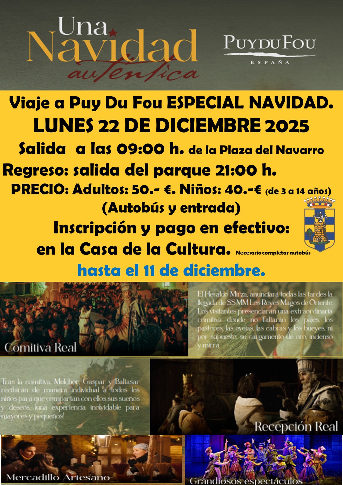 📌LUNES 22 DICIEMBRE 2025🎄GRANDES ESPECTACULOS/ 👑 COMITIVA REAL Y RECEPCIÓN REAL ETC.PRECIO: 💰ADULTO 50.-€💰NIÑO 40.-€✍️INSCRIPCION Y PAGO EN CASA DE LA CULTURA HASTA EL 11 DE DICIEMBRE(necesario completar autobús)