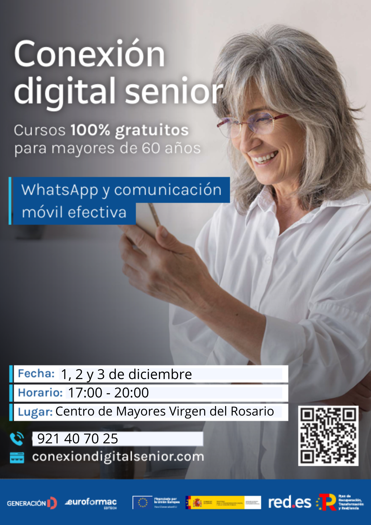 ¿Tienes más de 60 años y quieres sacarle el máximo partido a tu móvil? Apúntate al curso gratuito “WhatsApp y comunicación móvil efectiva” y aprende a comunicarte con soltura, enviar fotos, mensajes de voz y mucho más.
