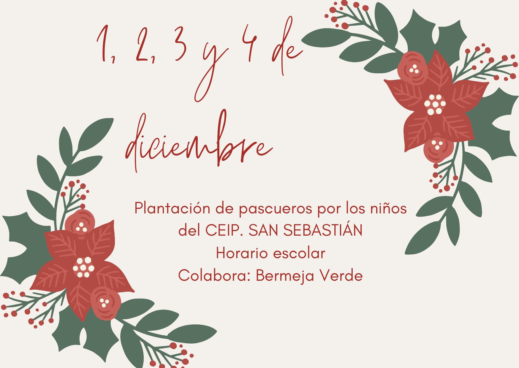 Esta semana tendremos de lunes a jueves la plantación de Pascueros por parte de nuestros niños del colegio, tanto dentro como fuera del centro escolar. Ya informarán la organización por edades. Se contará con la colaboración de la asociación Ente El Lugar y de otros voluntarios.