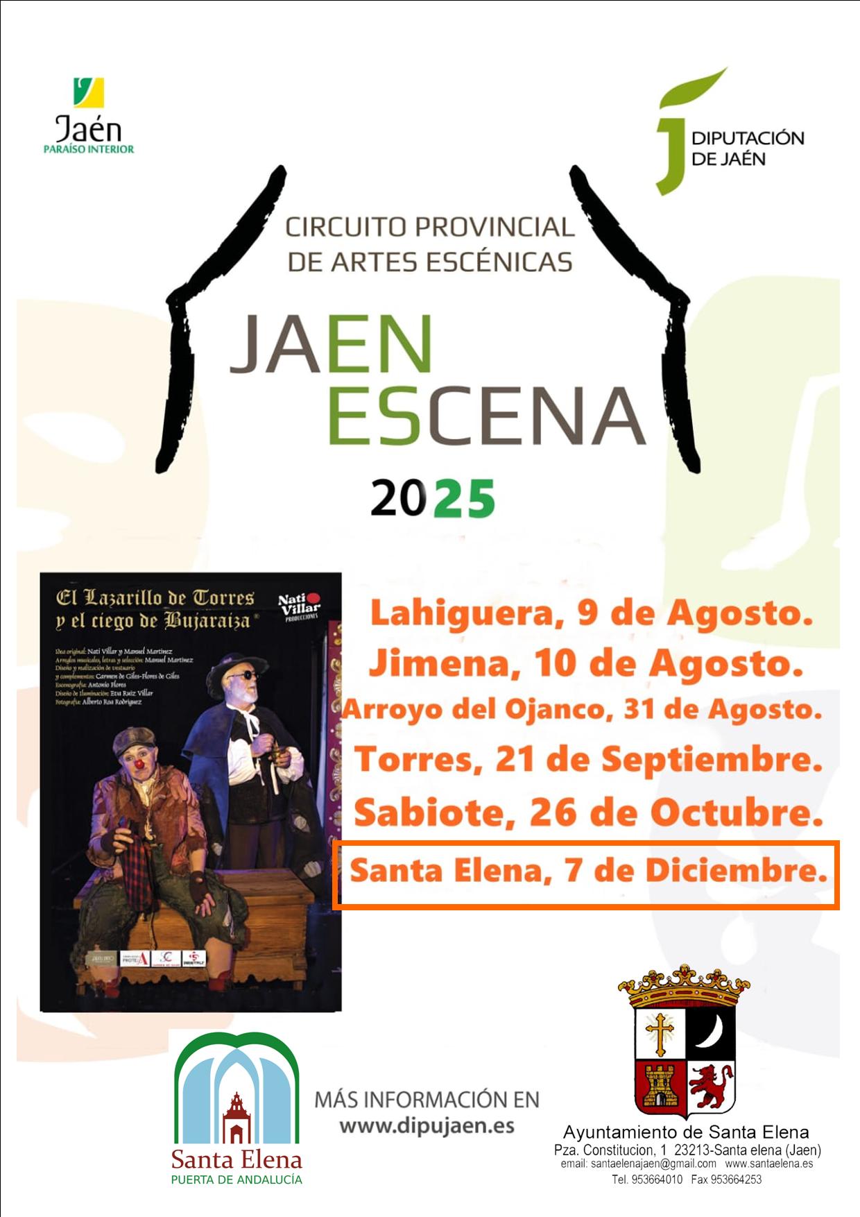 El Domingo día 7 de Diciembre podremos disfrutar de ésta bonita obra de teatro de la compañía de Nati Villar ,dentro del Circuito de Artes Escénicas de la Exma Diputación Provincial de Jaén.