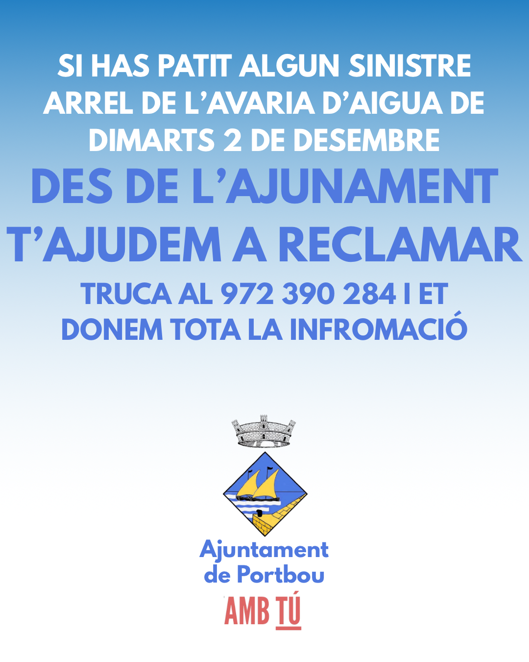 ✅ Si l’avaria d’aigua d’ahir t’ha generat algun problema a la llar, des de l’Ajuntament de Portbou t’ajudem!