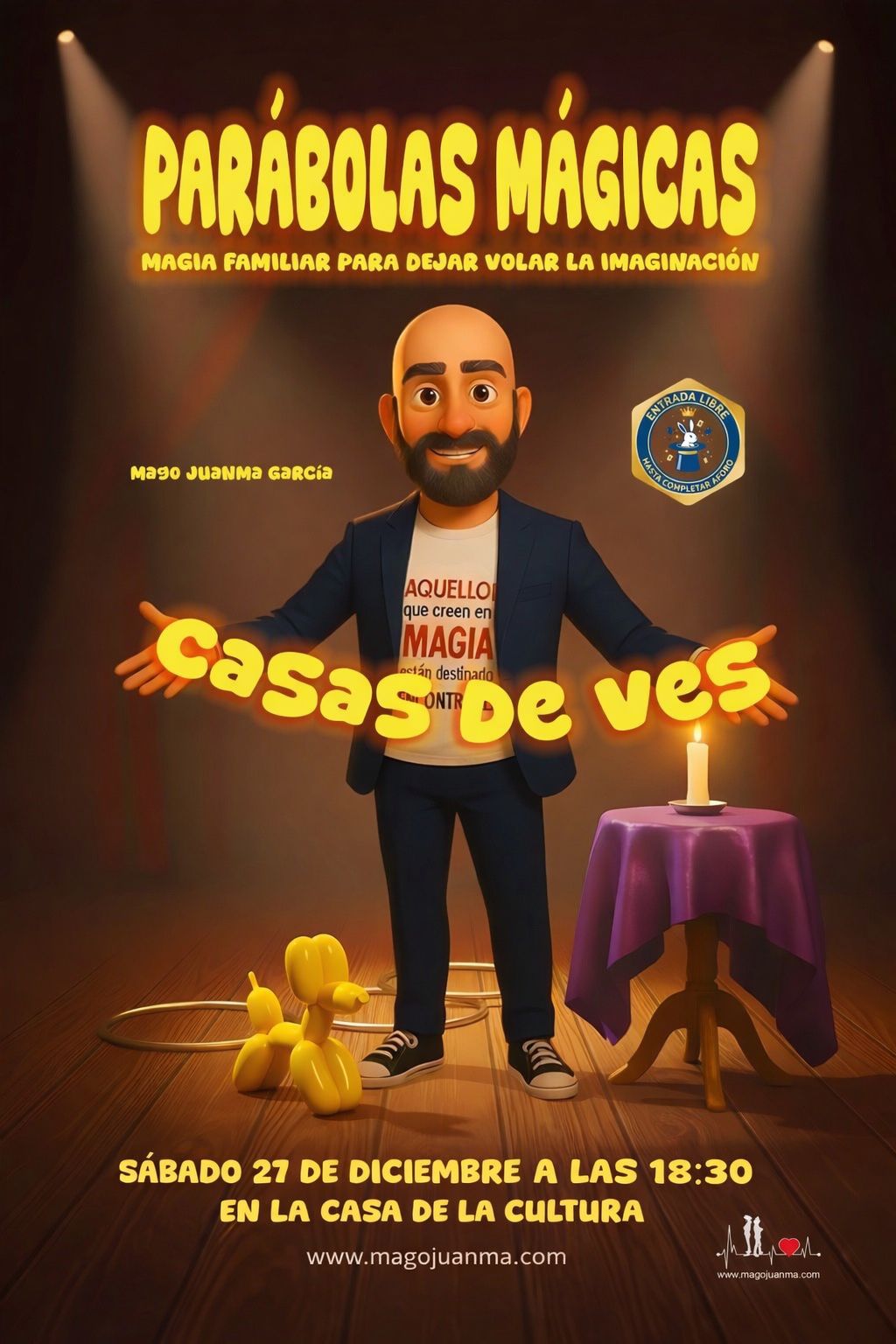 Recuerda que está tarde 27 de diciembre tienes una cita con la Magia en la Casa de la Cultura 18:30Mago Juanma y su espectáculo:PARABOLAS MAGICASEntrada gratuita