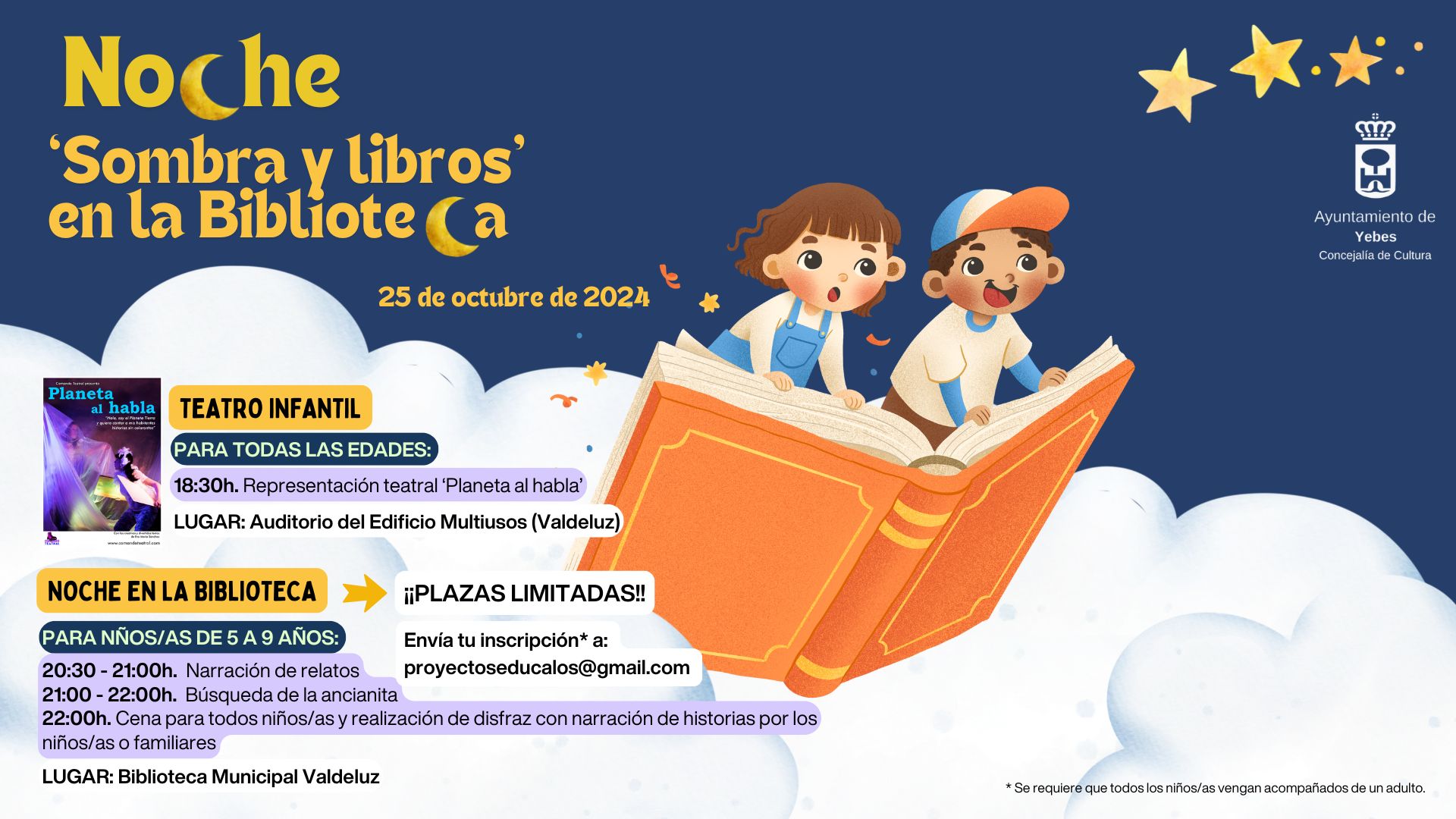 Noche "Sombra y libros" en la Biblioteca2024-10-21 16:54:23Cultura💫 Con motivo del Día de las Bibliotecas el próximo 25 de octubre celebramos un día mágico ¡con pernoctación en la Biblioteca! 📖 💤