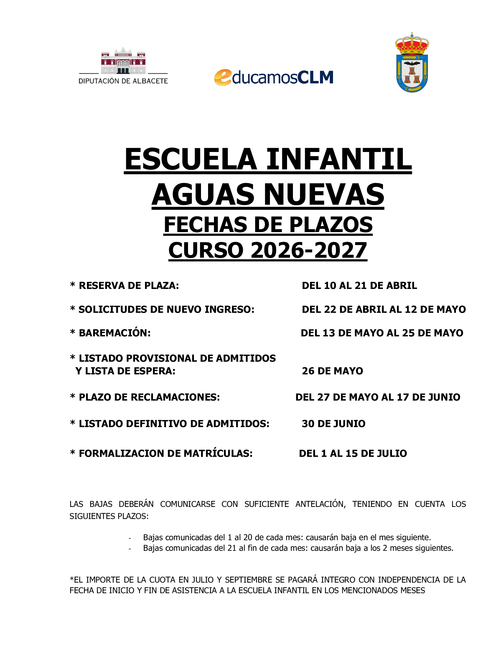 RESERVA Y NUEVAS SOLICITUDES DE INGRESO ESCUELA INFANTIL CURSO 2026-2027