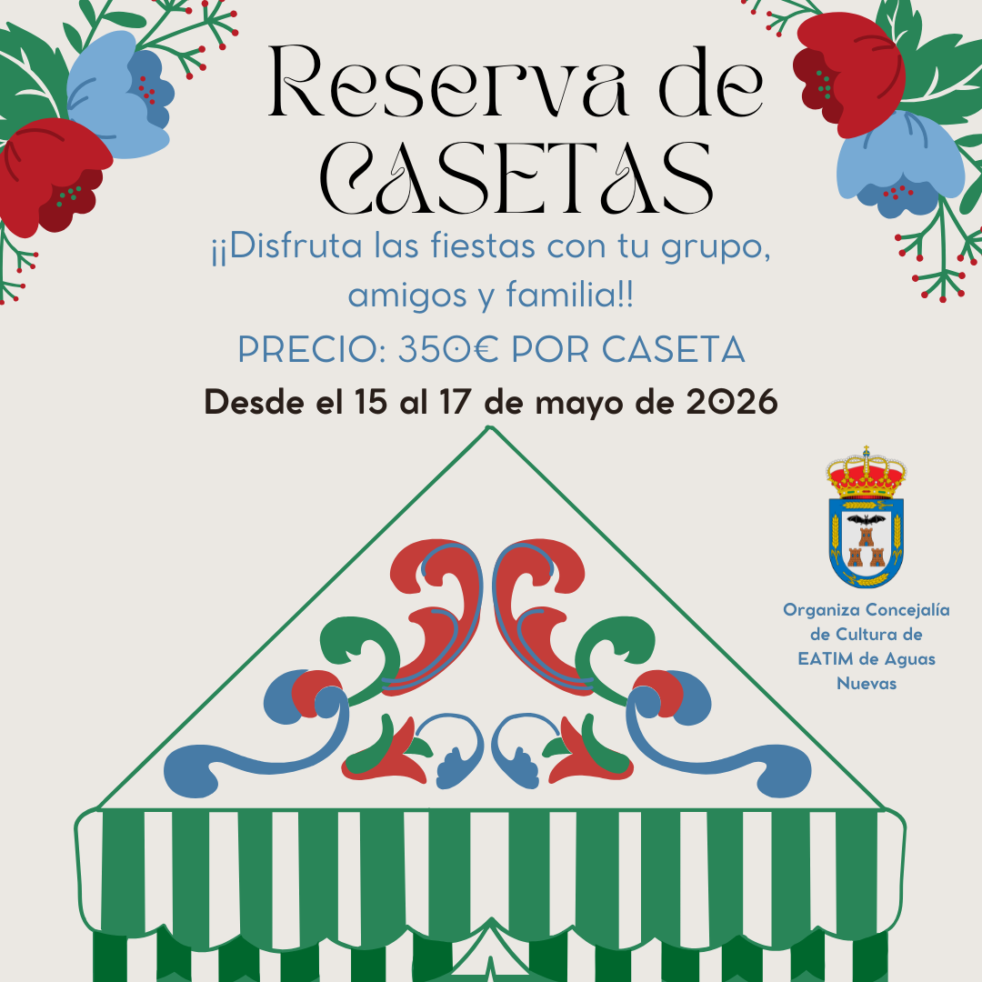 Se informa a todos los vecinos que ya está abierto el plazo para reservar casetas para las Fiestas de San Isidro Labrador 2026, que se celebrarán los días 15, 16 y 17 de mayo.