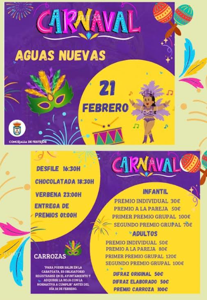 CARNAVAL 2026 EN AGUAS NUEVAS (OBLIGATORIO REGISTRAR EN EL AYTO. A LAS CARROZAS, HASTA EL 18 DE FEBRERO)