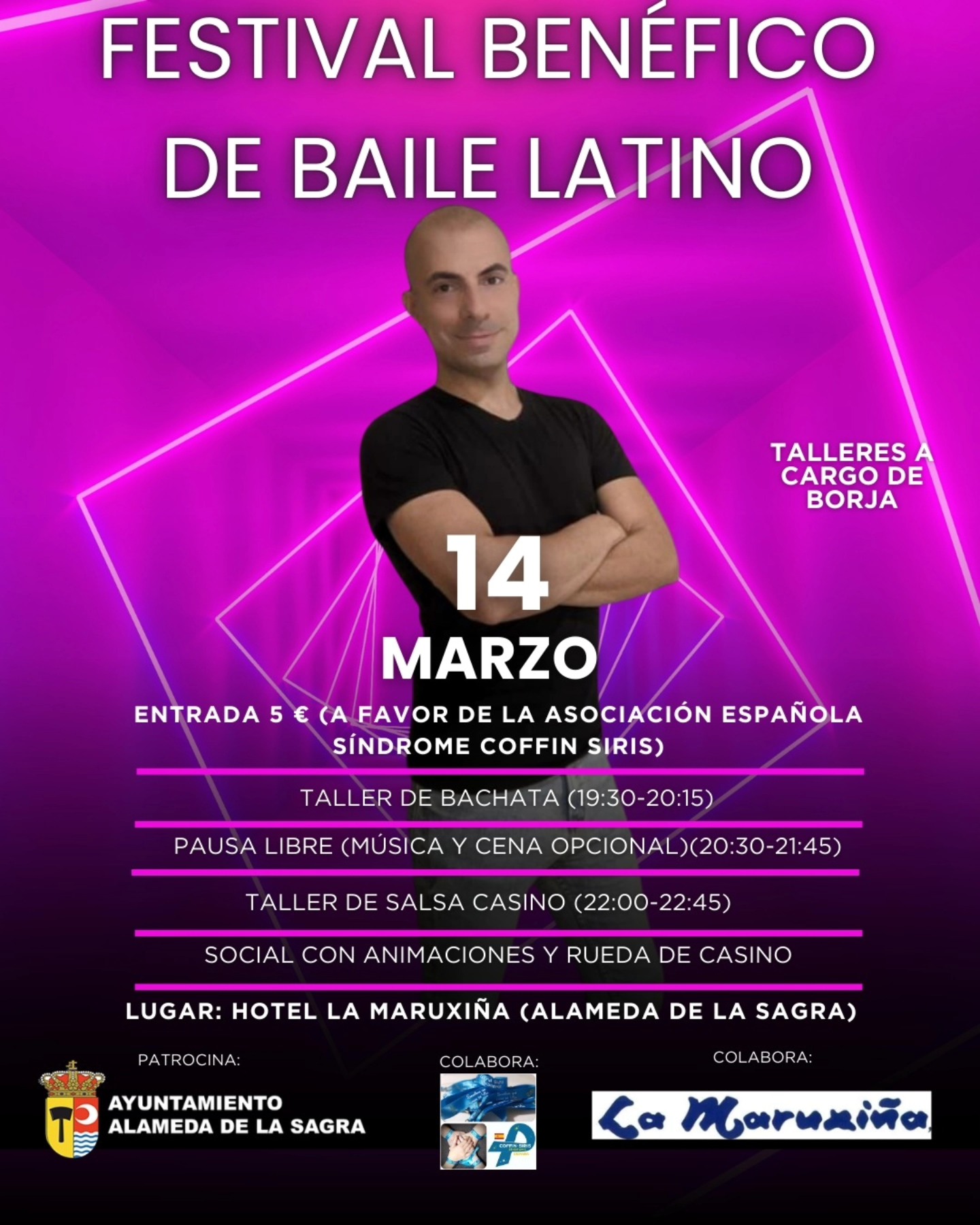 Hoyyyy 14 de marzo se celebra el Festival Benéfico de Baile Latino en el Hotel La Maruxiña, en Alameda de la Sagra.