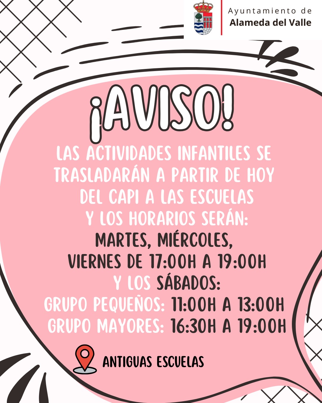 📢 Se comunica a la población que, por vacaciones de la monitora, no habrá actividades infantiles en las siguientes fechas: