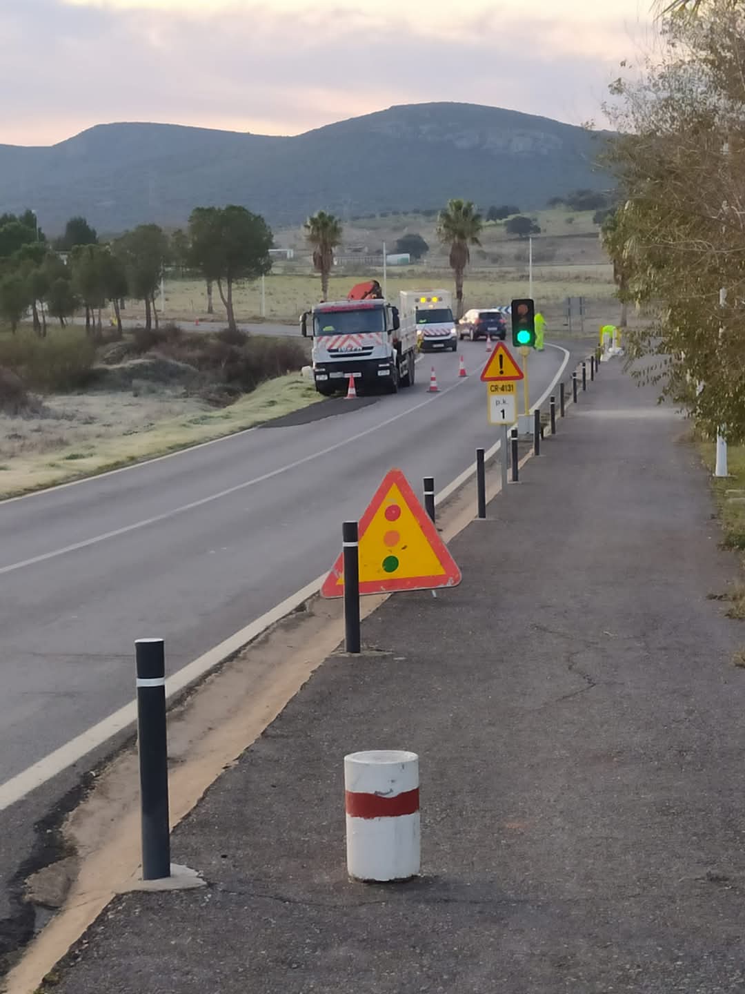 Continúa la intervención de operarios de la Diputación sobre el puente del arroyo en la carretera CR4131. Rogamos precaución.