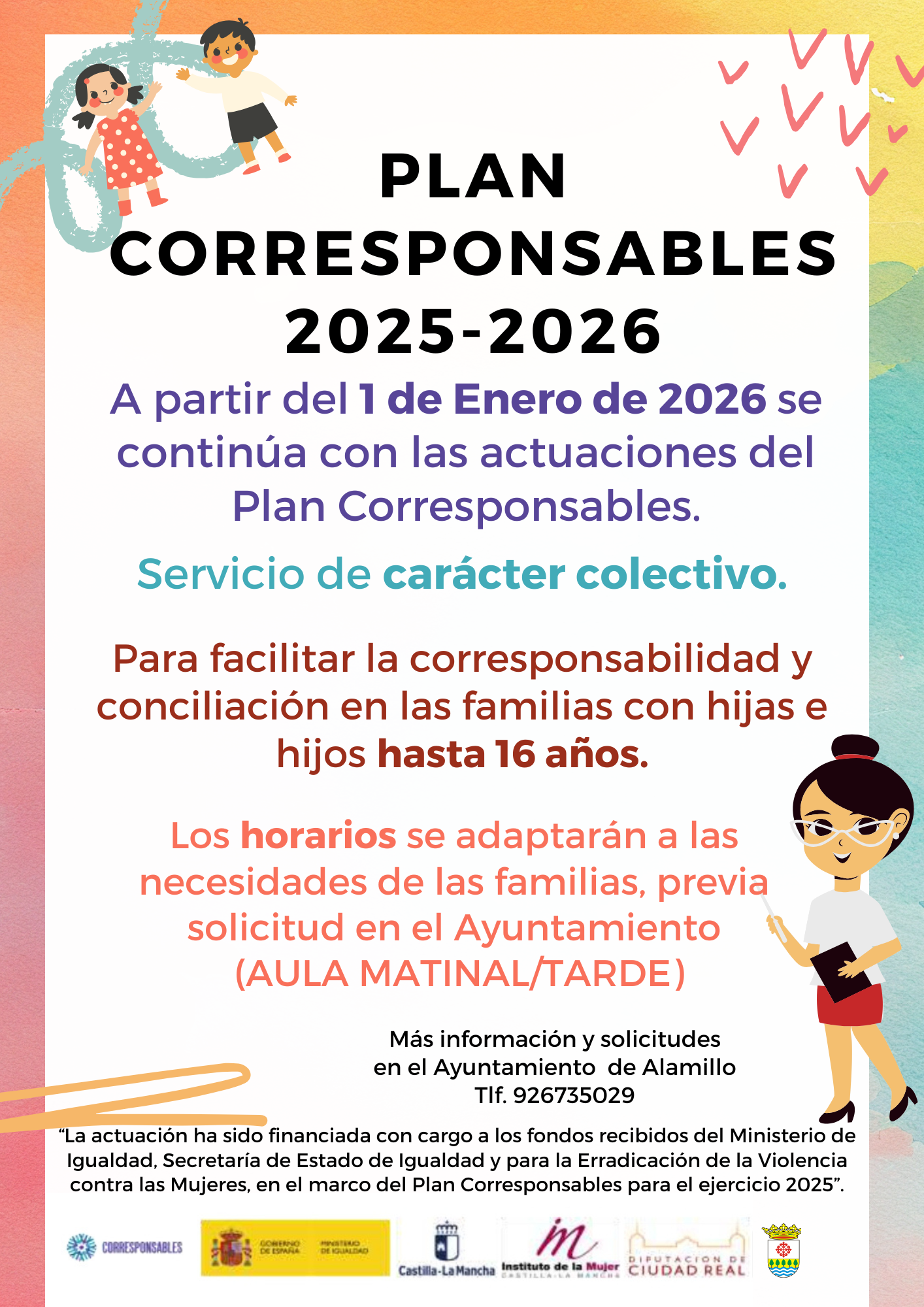 PLAN CORRESPONSABLES 2025-20262026-01-08 16:06:02Info GeneralA partir del 1 de Enero se dará continuidad al Plan Corresponsables (Cuarta edición).