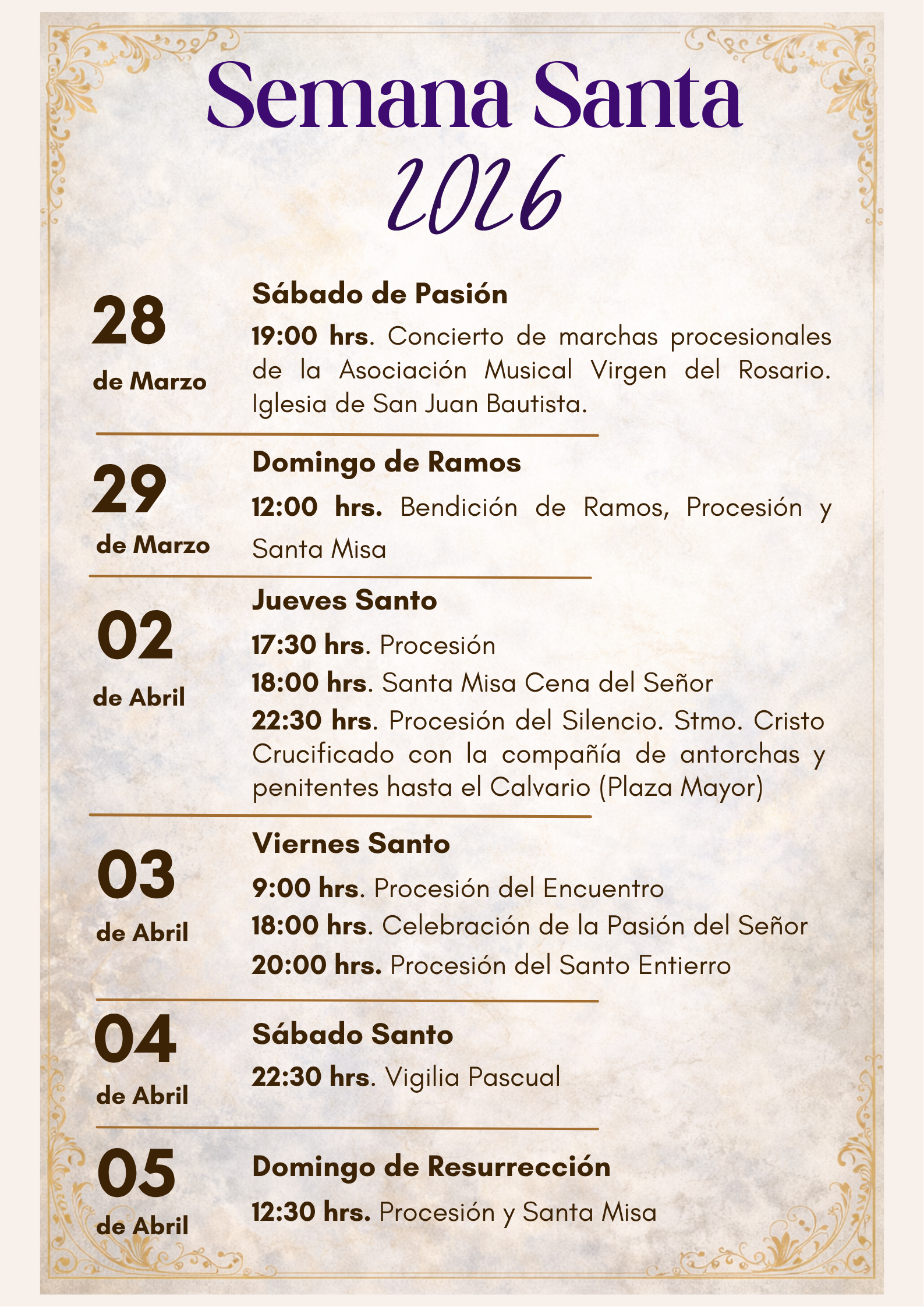 ✝️ 𝐒𝐞𝐦𝐚𝐧𝐚 𝐒𝐚𝐧𝐭𝐚 𝐝𝐞 𝐀𝐥𝐚𝐭𝐨𝐳 𝟐𝟎𝟐𝟔 ✝️ El Ayuntamiento de Alatoz comparte el cartel y programa oficial de la Semana Santa de 2026, en colaboración con la Iglesia de San Juan Bautista. 👉🏼 Invitamos a vecinos/as y visitantes a disfrutar de estos días tan especiales para nuestro pueblo, en los que la tradición, la cultura y la devoción se unen en cada uno de los actos.
