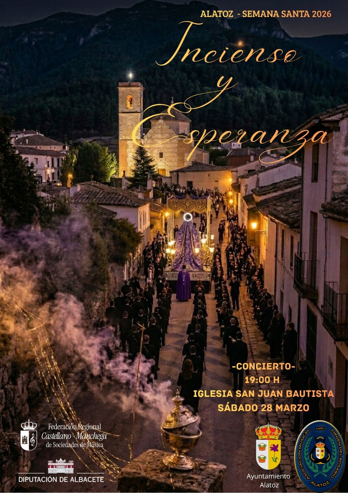 La Asociación Musical Virgen del Rosario de Alatoz ofrece un concierto dedicado a la música de Semana Santa, lleno de emoción, tradición y sentimiento.