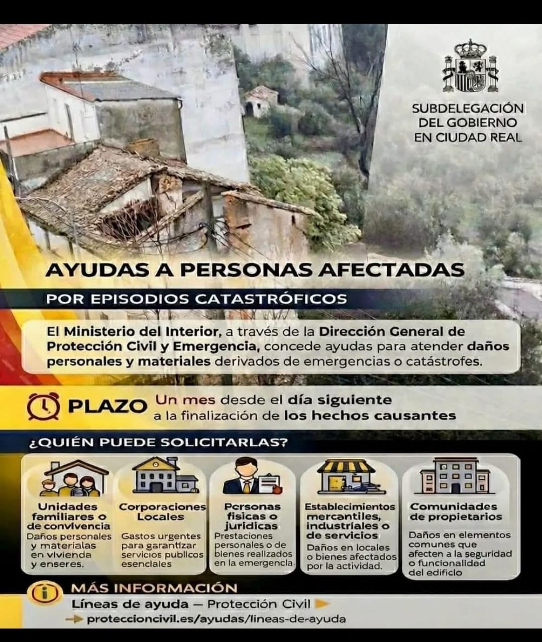 El Ministerio del Interior abre la vía para solicitar ayudas por los desperfectos ocasionados por las borrasca Leonardo en Castilla La Mancha. Si el temporal ha causado daños en tu vivienda o bienes, puedes solicitar esta ayuda a través del PID del Ayuntamiento.