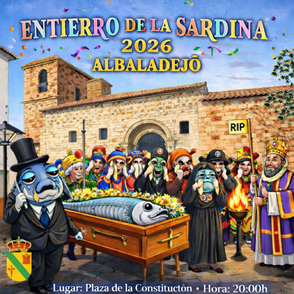 Su afligido esposo Don Boquerón, sus hijos, hermanas, nietos y bisnietos y toda la familia carnavalera de Albaladejo dará su último adiós a Dña. Sardina, a la que acompañarán el miércoles 18 de febrero de 2026 a las 20:00h en la Plaza de la Constitución, donde se repartirán sardinas, huevos y refrescos en su memoria.&n(...)