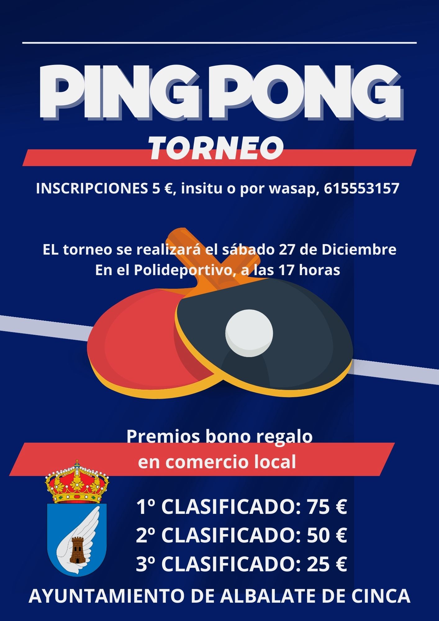 El Ayuntamiento comunica que el viernes dia 26 de Diciembre es el último dia para apuntarse a la Cena de Nochevieja.