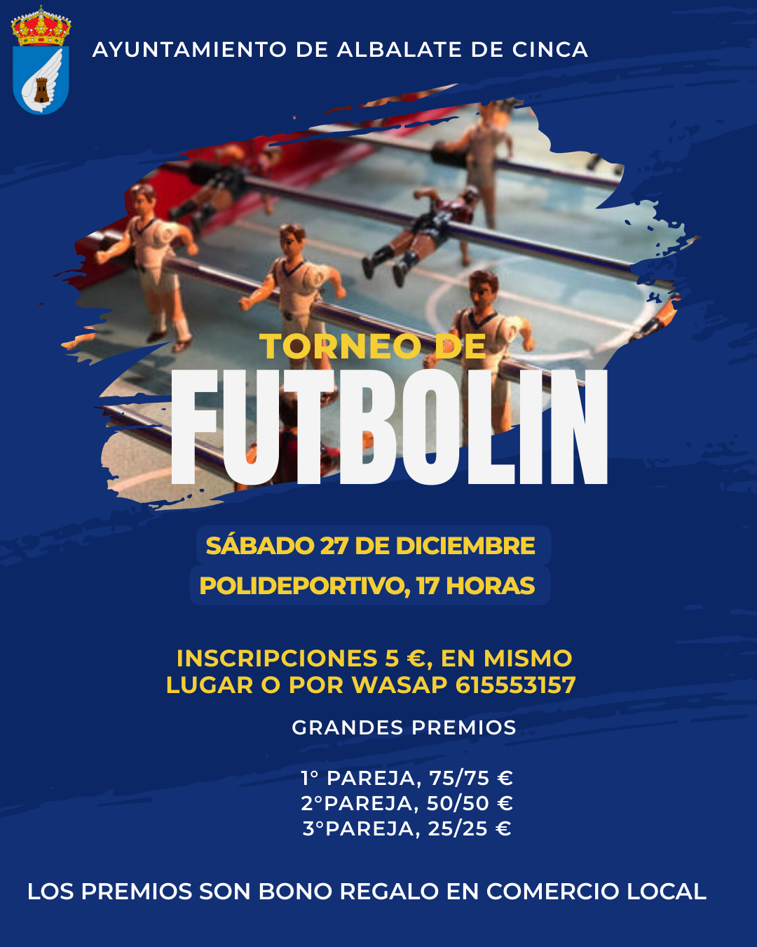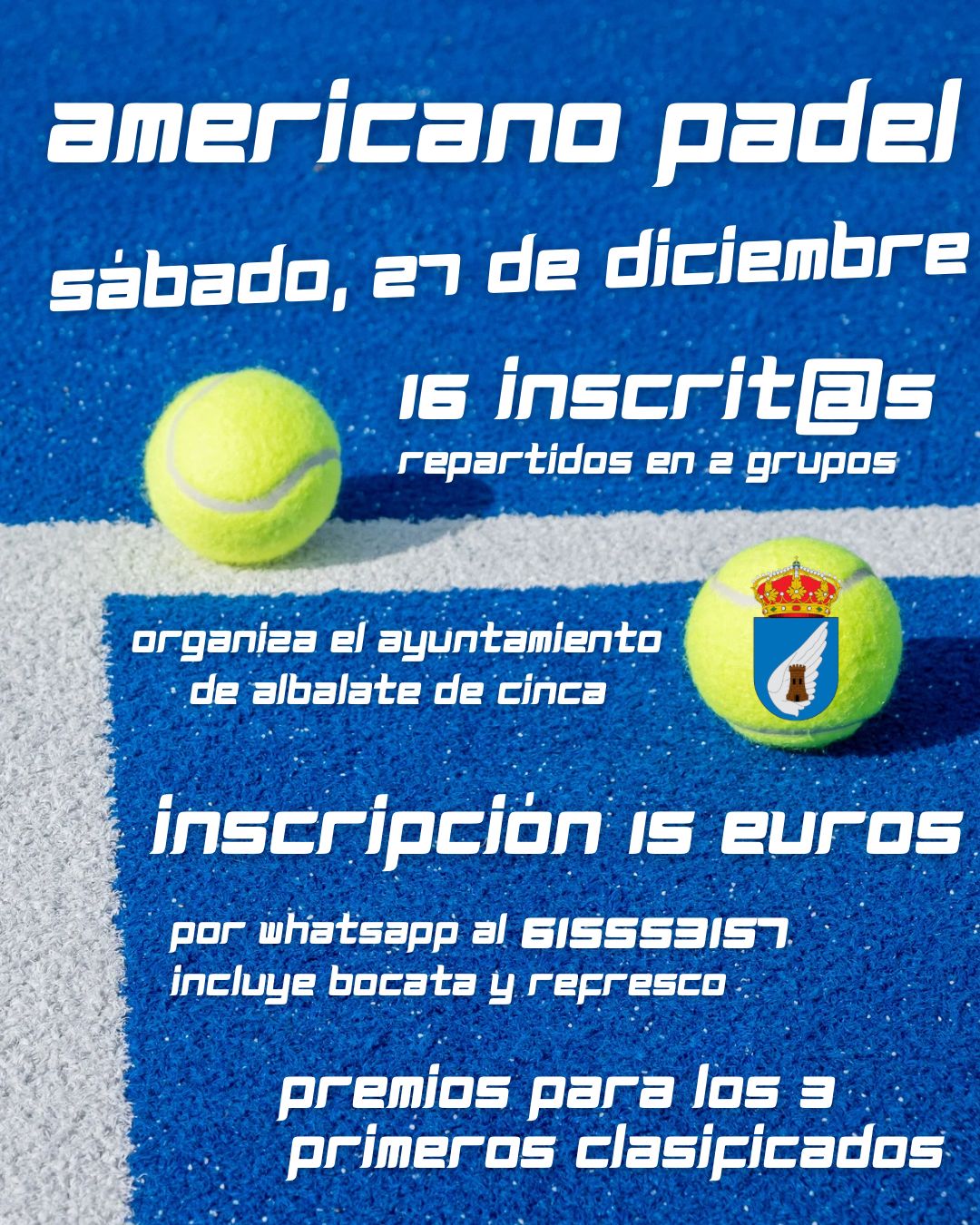El Ayuntamiento informa de la celebración de un día de torneos en el pabellón municipal de Albalate de Cinca. La jornada combinará competiciones deportivas y una sesión musical con DJ.